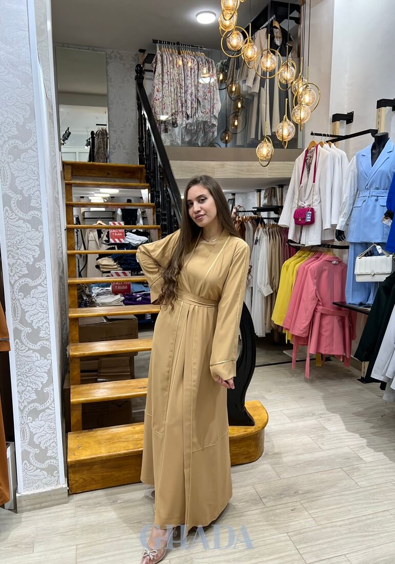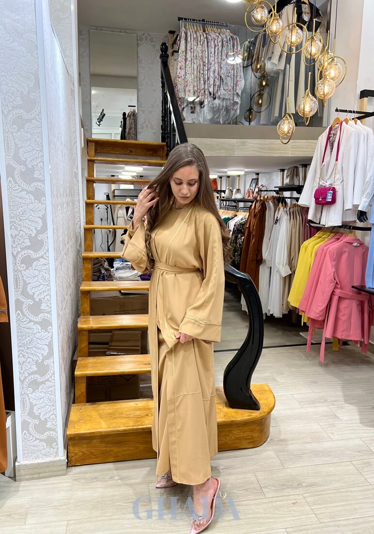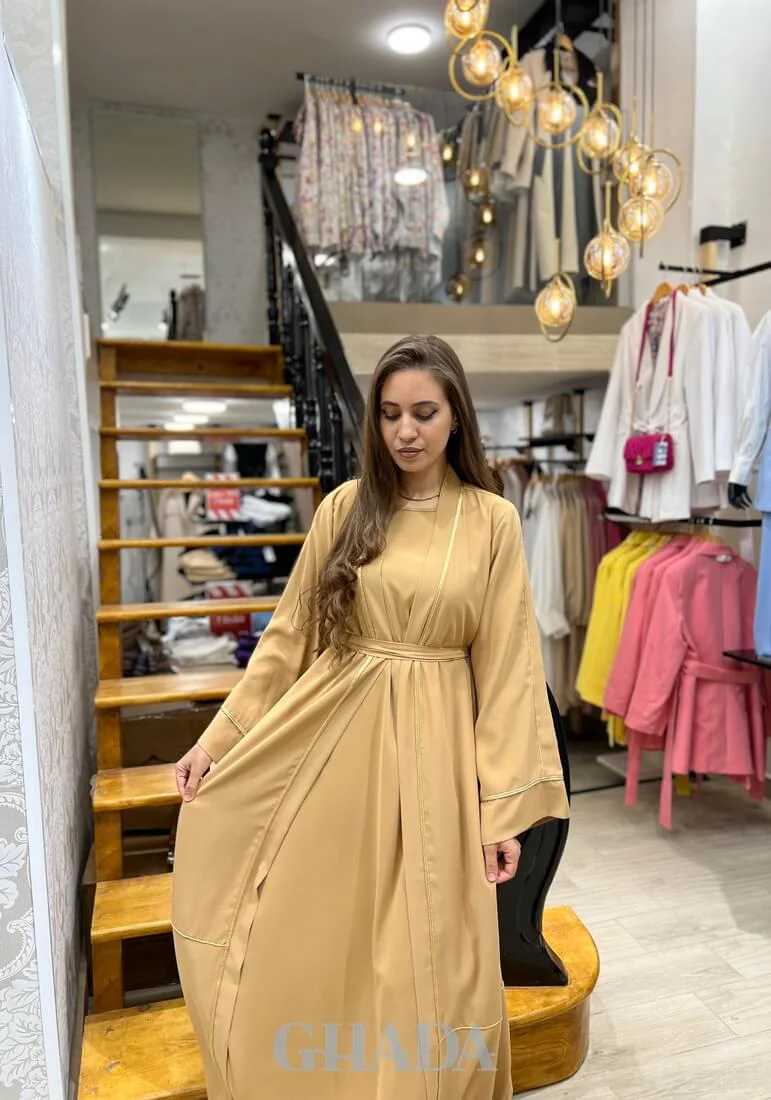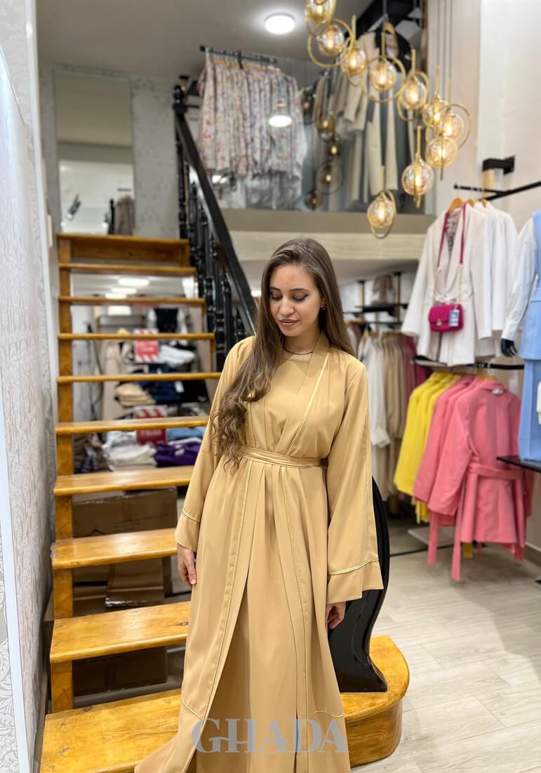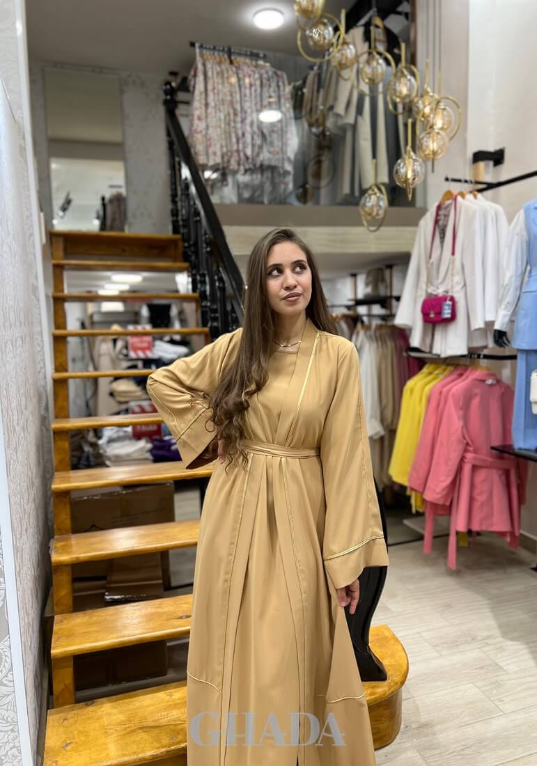 Abaya kimono avec sfifa traditionnelle en beige caramel