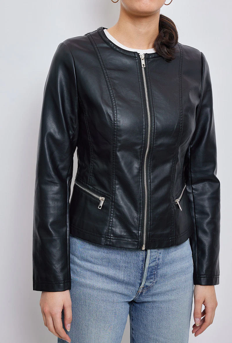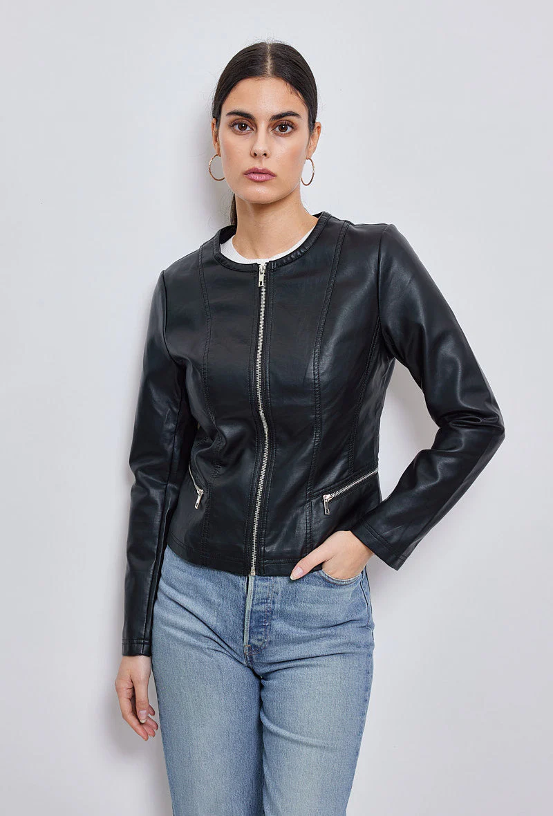 - Veste similicuir col rond mi-saison