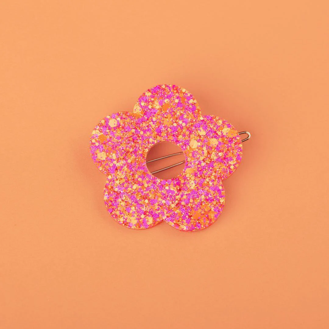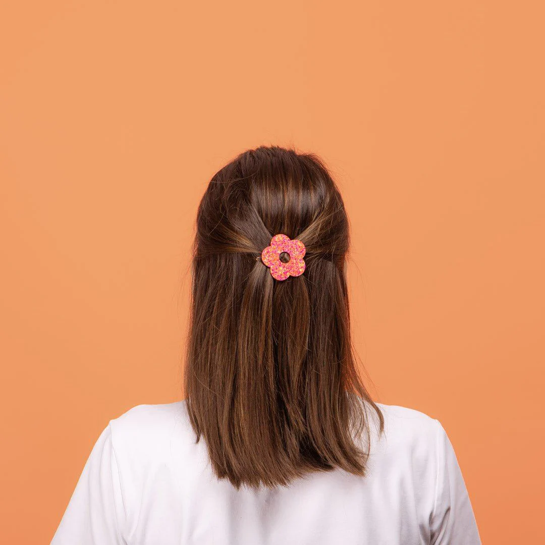 Barrette ronde Fleur Fuchsia Orange