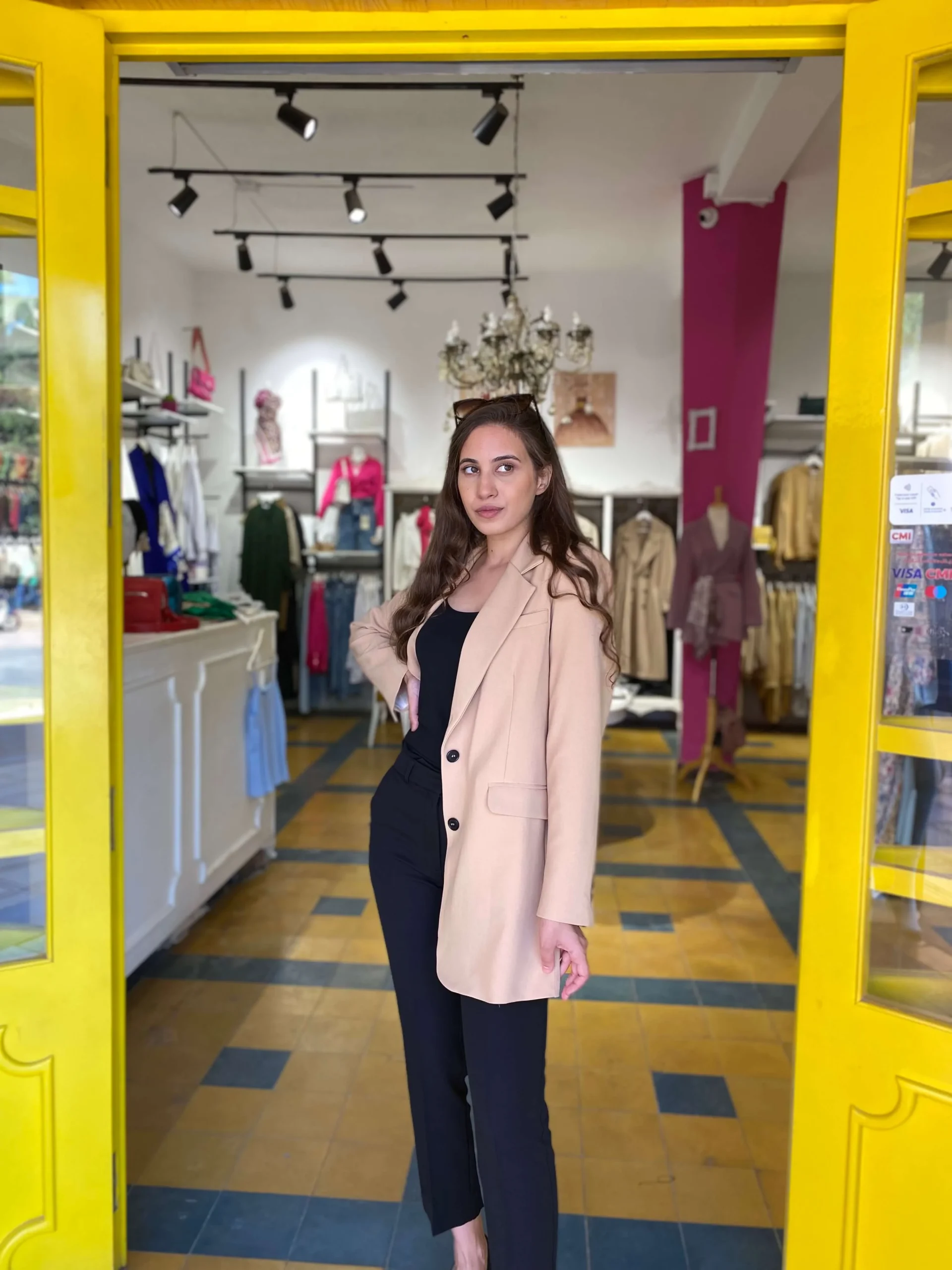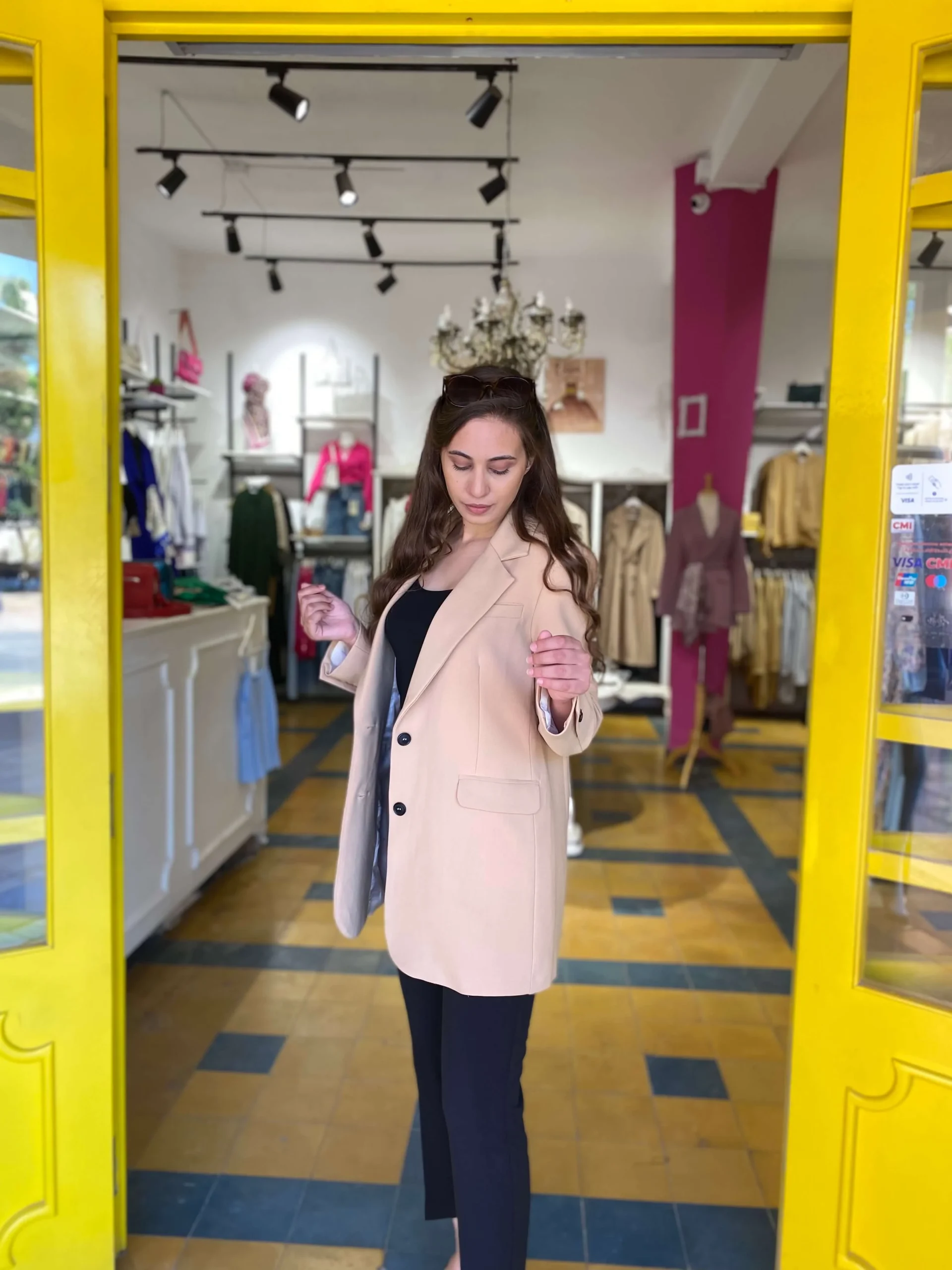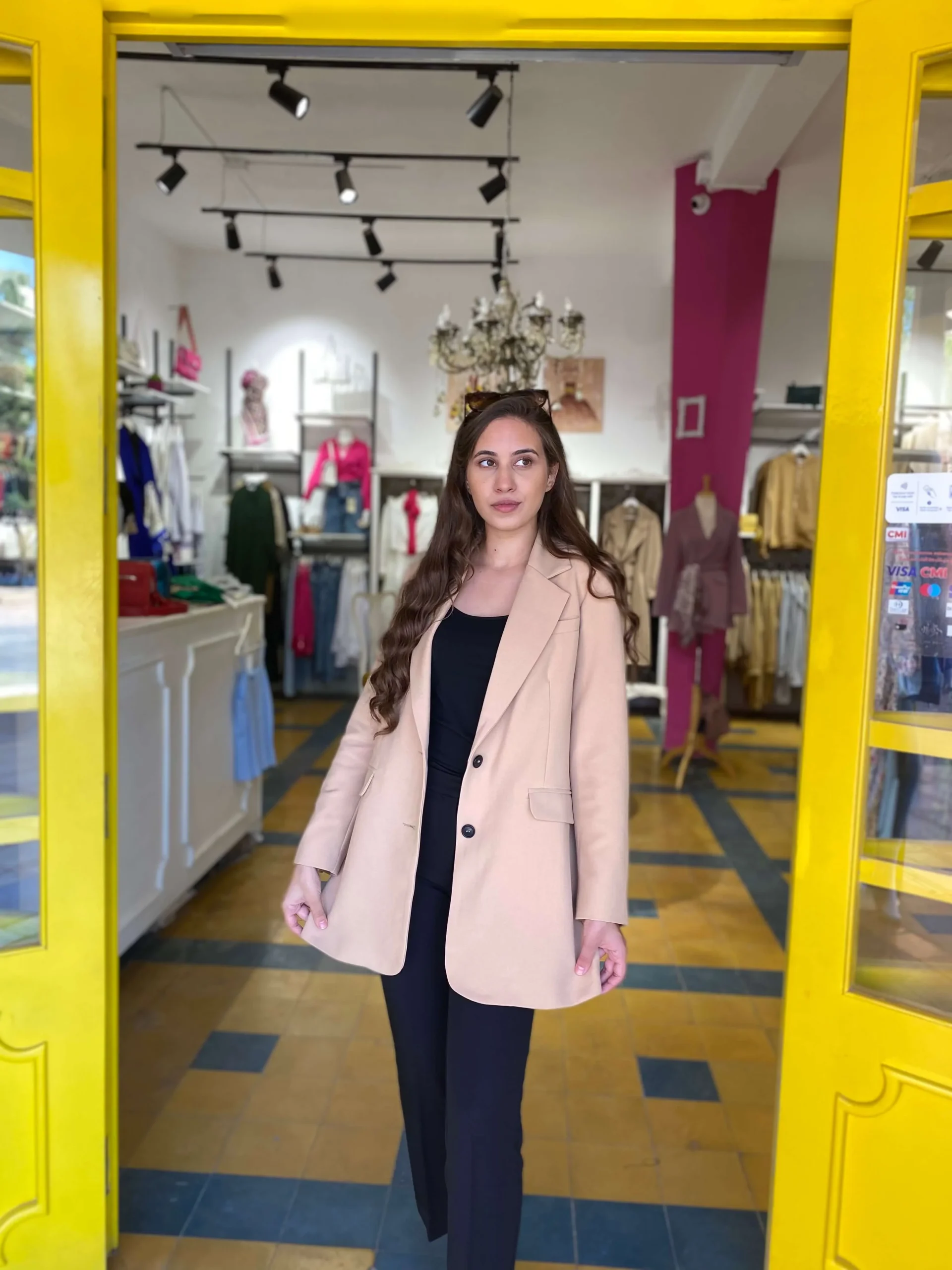 Blazer en beige Mannequin porte la taille S et mesure 172 cm 100% fabriqué au maroc