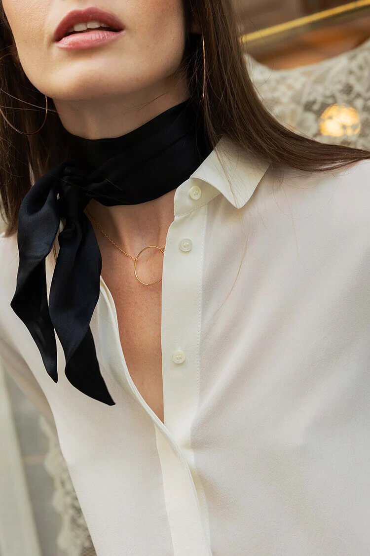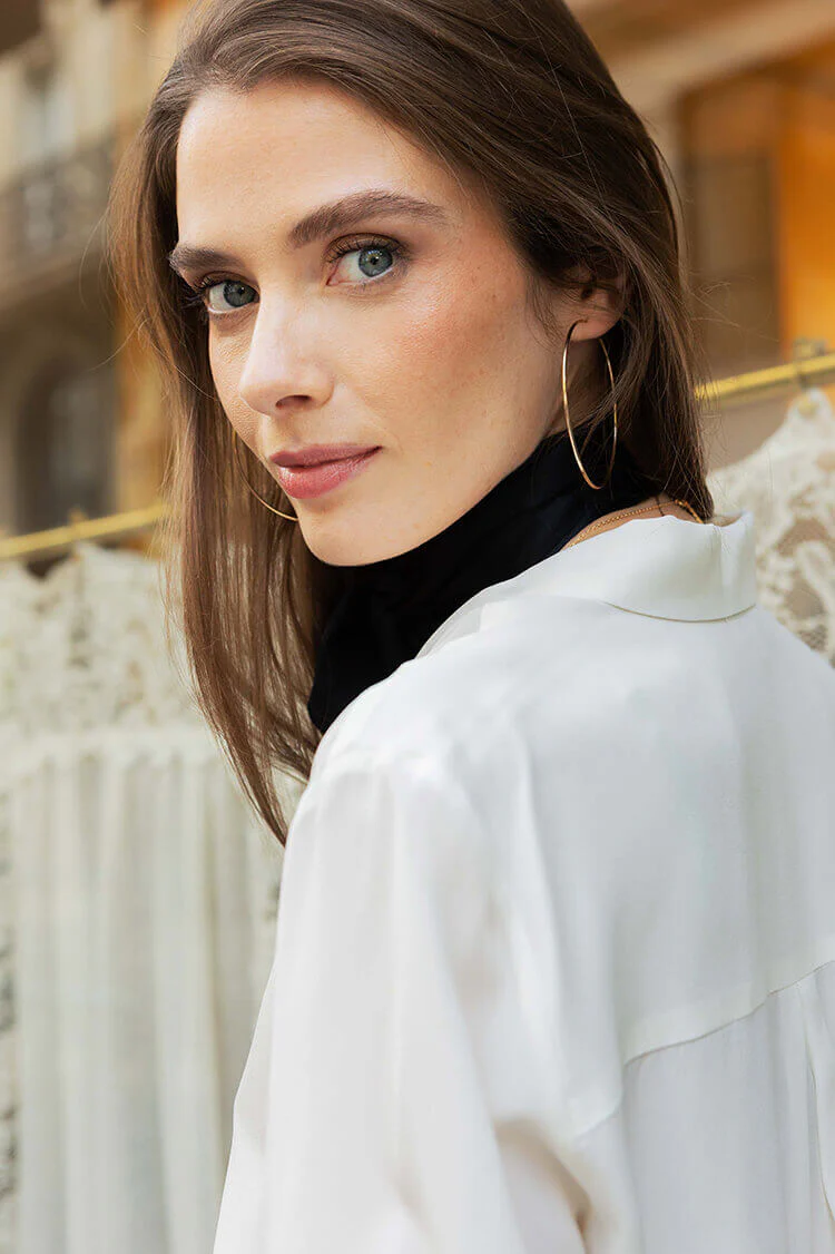 Die Bluse Benita ist aus einem fliessenden, luftigen Kreppstoff gefertigt.Sie hat eine leicht, lockere Passform.Öffnen Sie einige Knöpfe und krempeln Sie die Ärmel für einen lässigen Look hoch.Kombinieren Sie die Bluse mit einer Jeans und einem Paar Sandalen, für einen chicen lässigen Look.Zusammensetzung: 100% SeidePflegehinweis: HandwäscheGrössenempfehlung: Wir verwenden eine französische Grössentabelle. Eine französische Grösse 36 entspricht […]