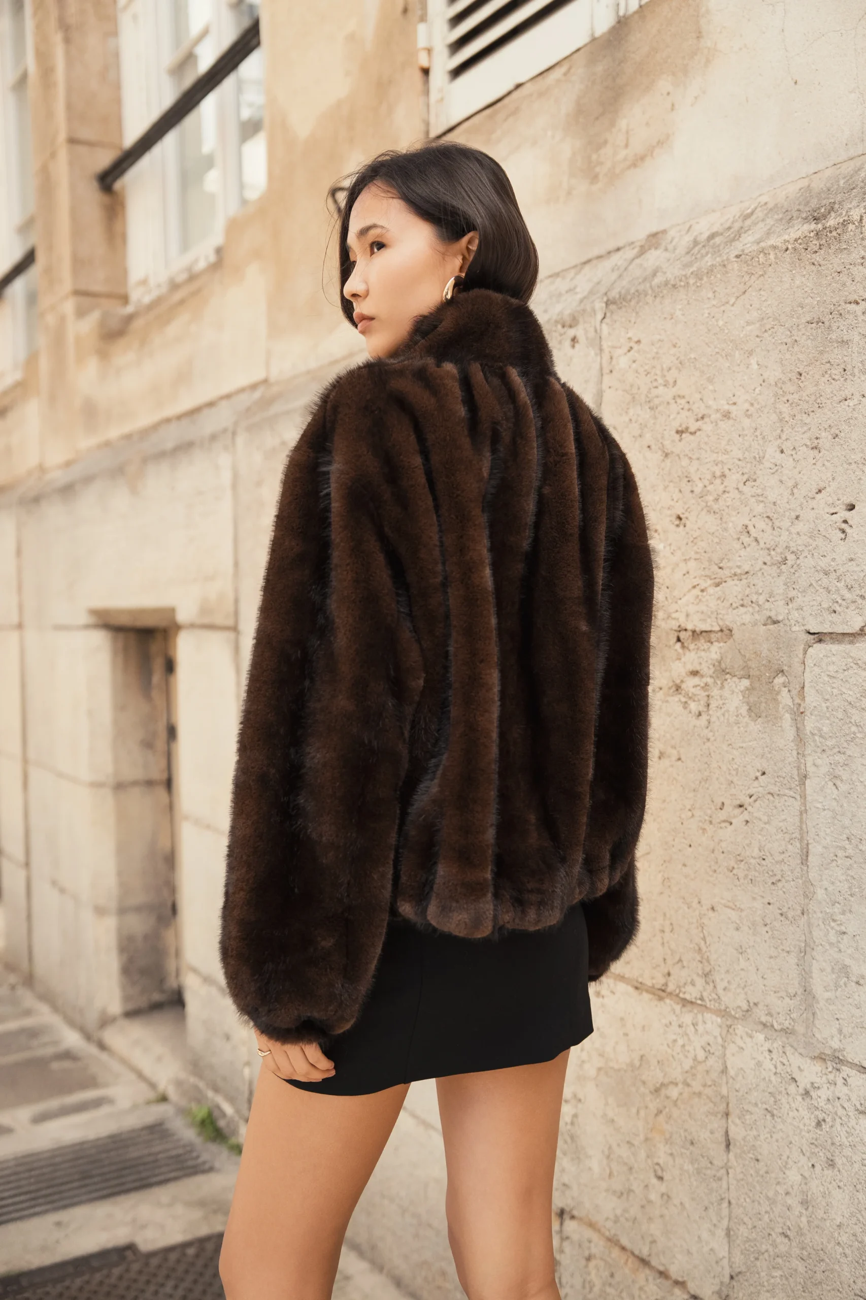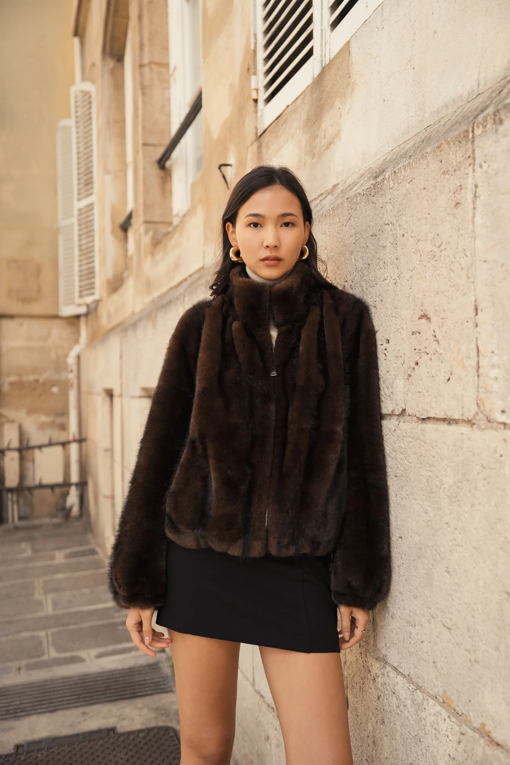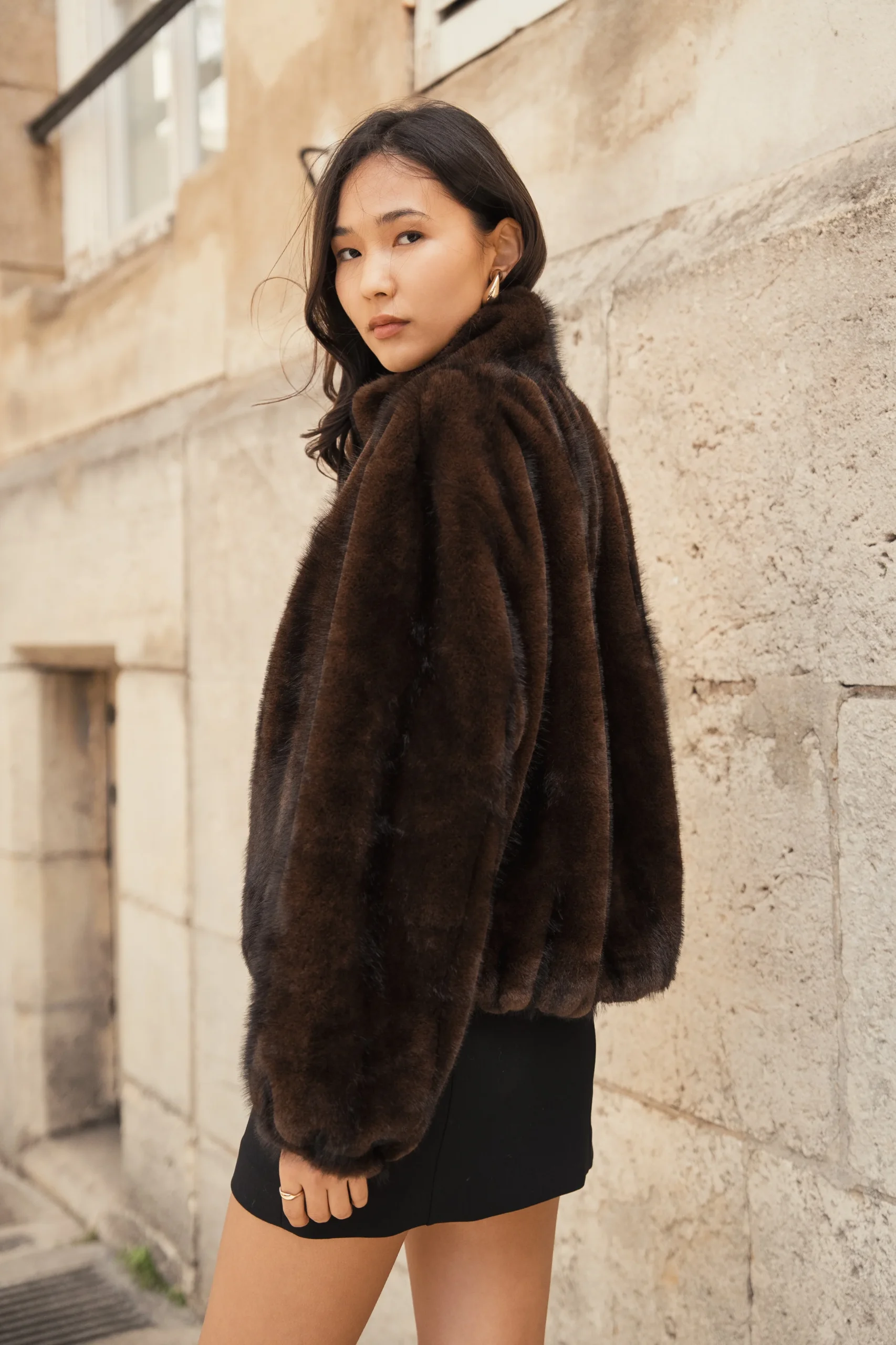 Blouson en fausse fourrure Col montant pour une protection optimale contre le froid Fermeture à glissière sur le devant Pli sur le bas et les manches Conseil taille : prenez une taille en dessous de votre taille habituelle Notre mannequin fait 1m77cm et prend du S.