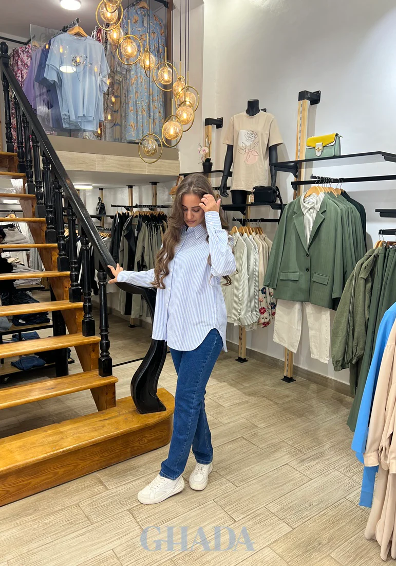 Découvrez notre nouvelle collection des chemises chics et décontractées signée GHADA. Chemise en popeline à rayures légères, respirante et polyvalente pour un look incontournable et décontractés. Chemise avec col à revers, décolletée en V et manches longues. Fermeture par boutonnage sur le devant. Coupe plus longue au dos Mannequin porte du S et mesure 172 […]