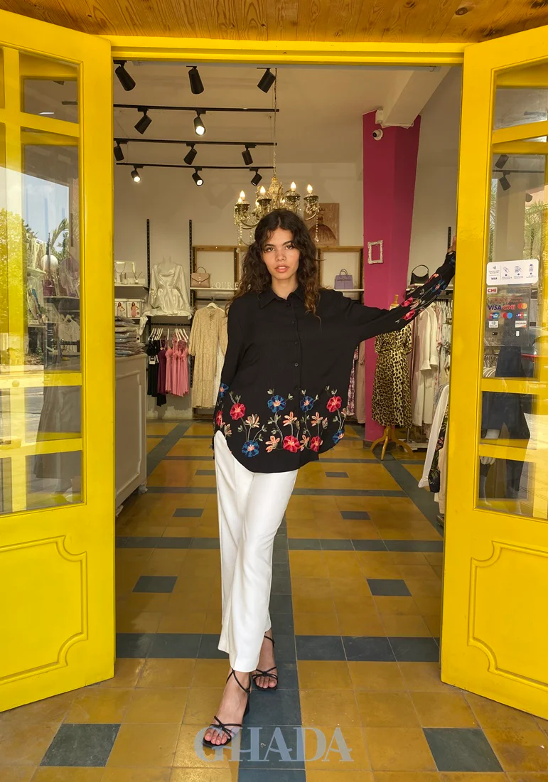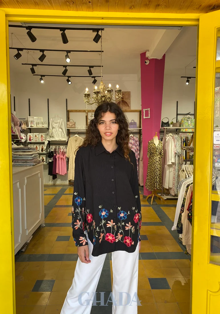 Chemise brodée en noir