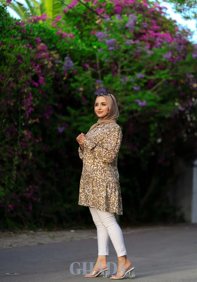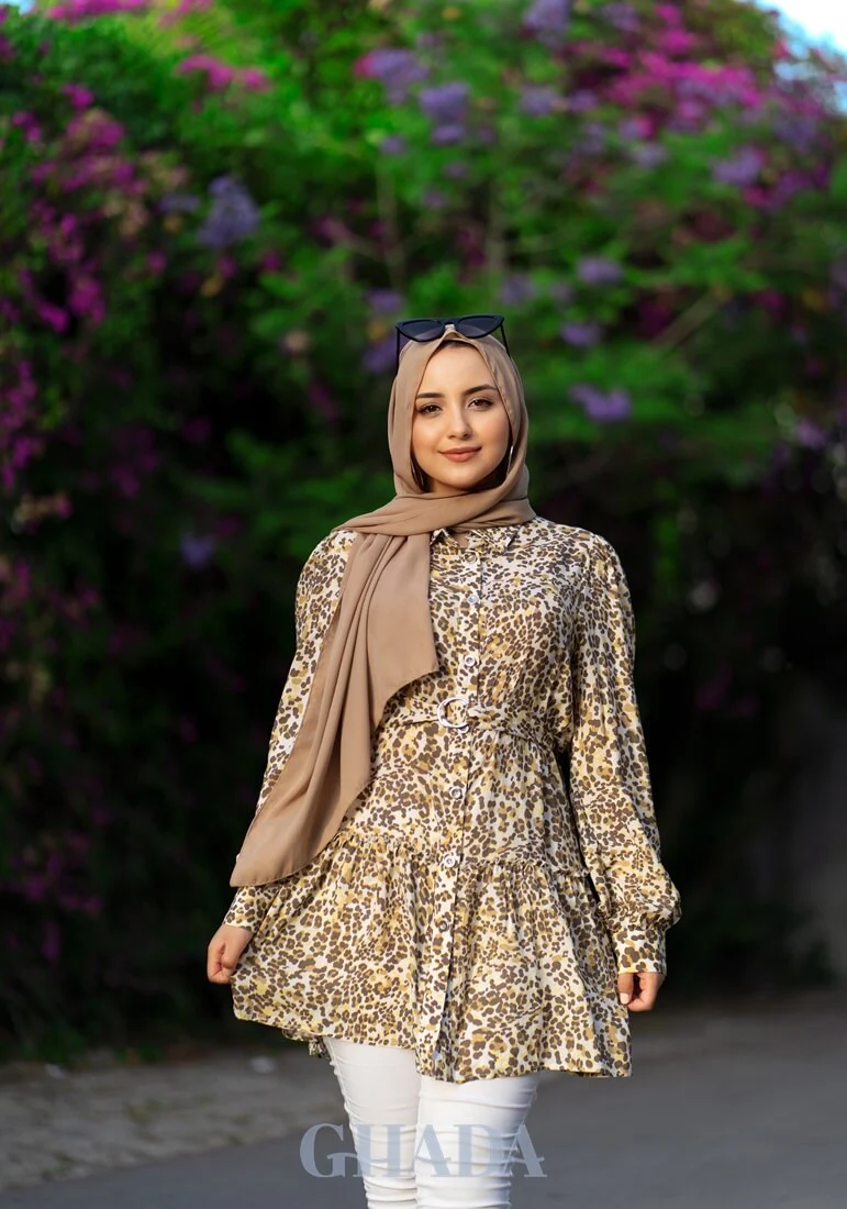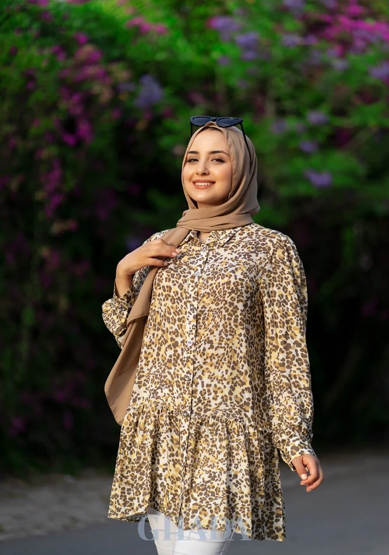 Chemise longue en beige imprimée