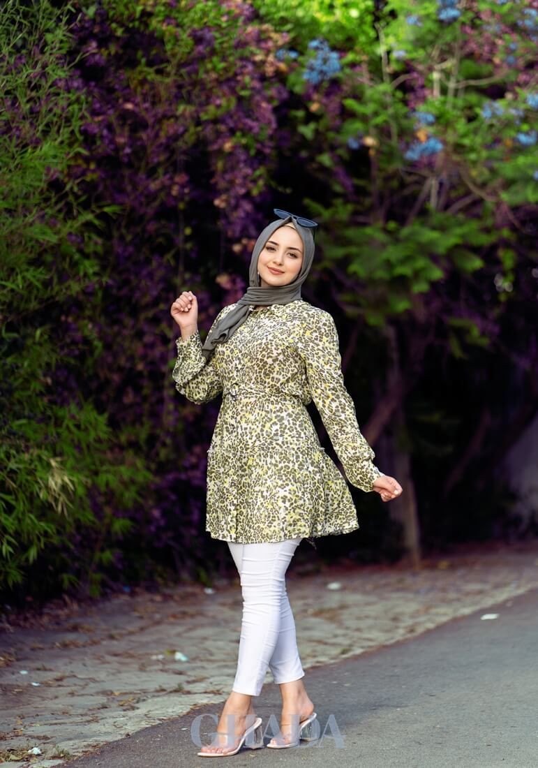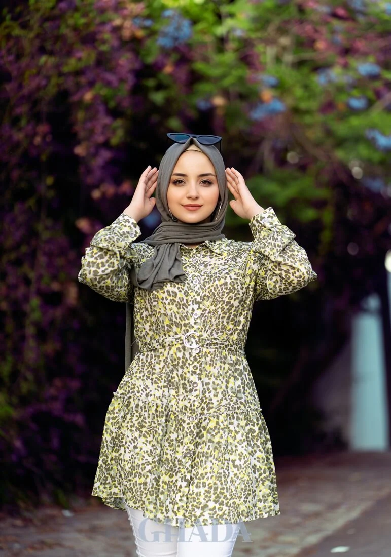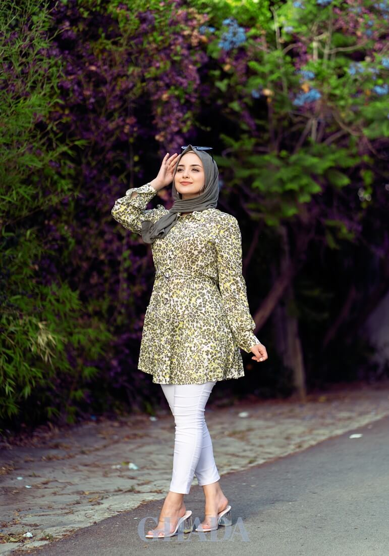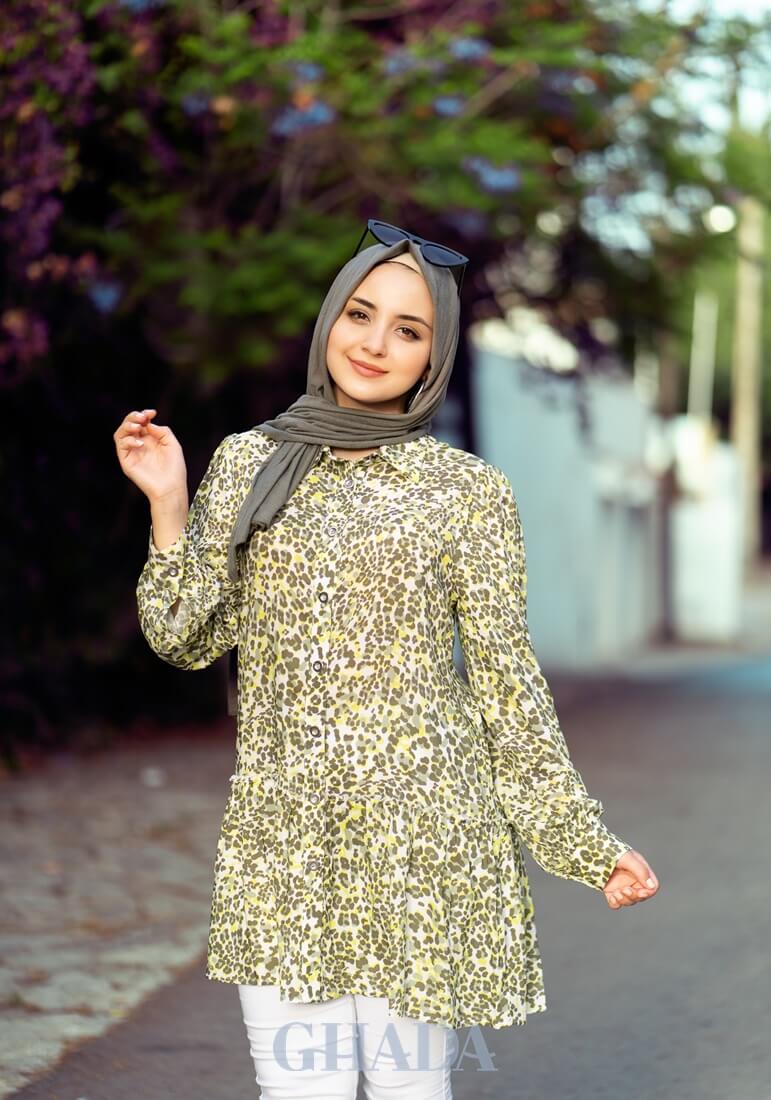 Chemise longue en vert imprimée