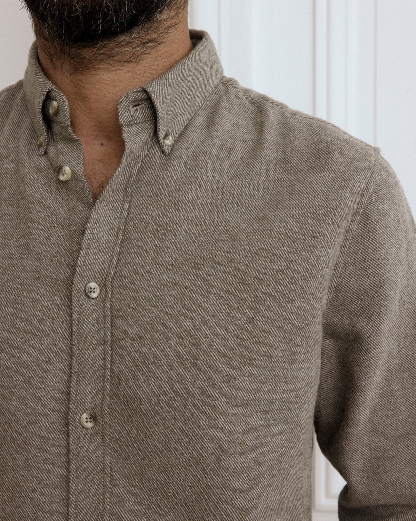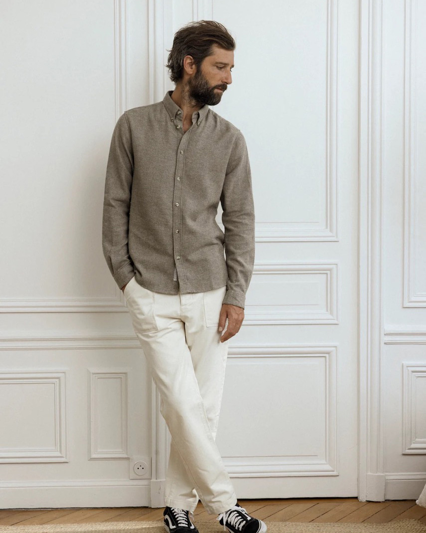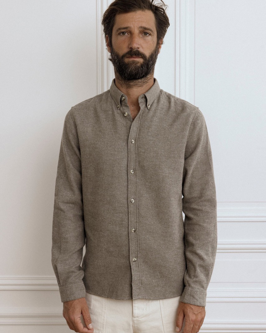 Chemise en Twill Brossé, à porter ouverte en surchemise avec un T-Shirt ou à même la peau pour un look confortable et stylé