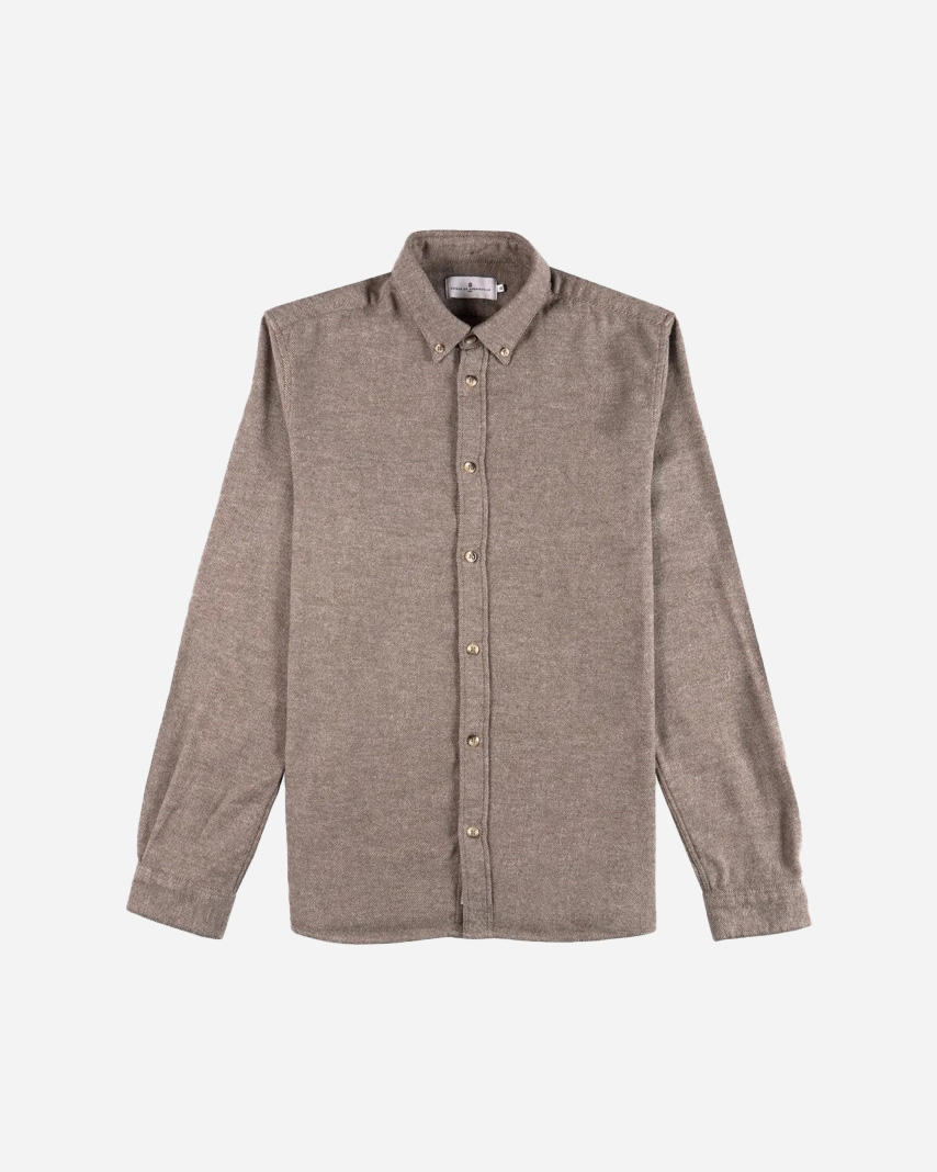 Chemise en Twill Brossé, à porter ouverte en surchemise avec un T-Shirt ou à même la peau pour un look confortable et stylé Coloris : Kaki Composition : 100% Coton Hirondelles de renfort ton sur ton Col button down Patte de boutonnage rapportée devant 7 boutons Poignets ronds 2 bouton Coupe droite Fabriqué au Portugal