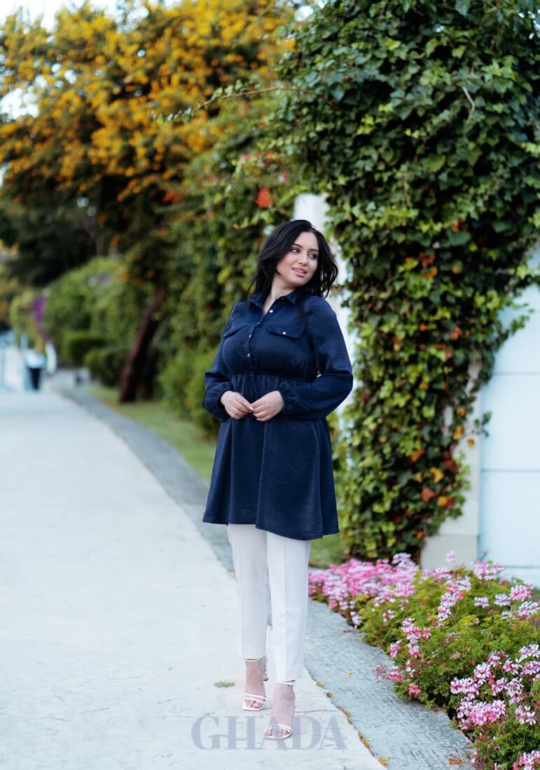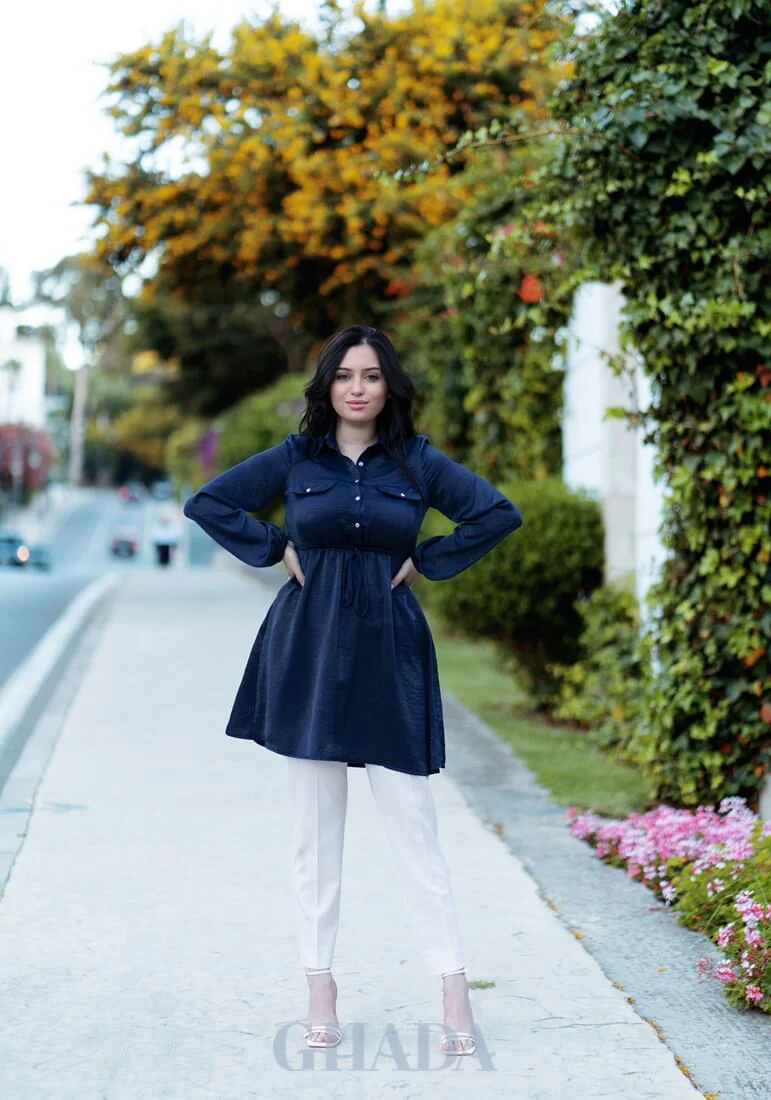 Chemise satinée en bleu marine