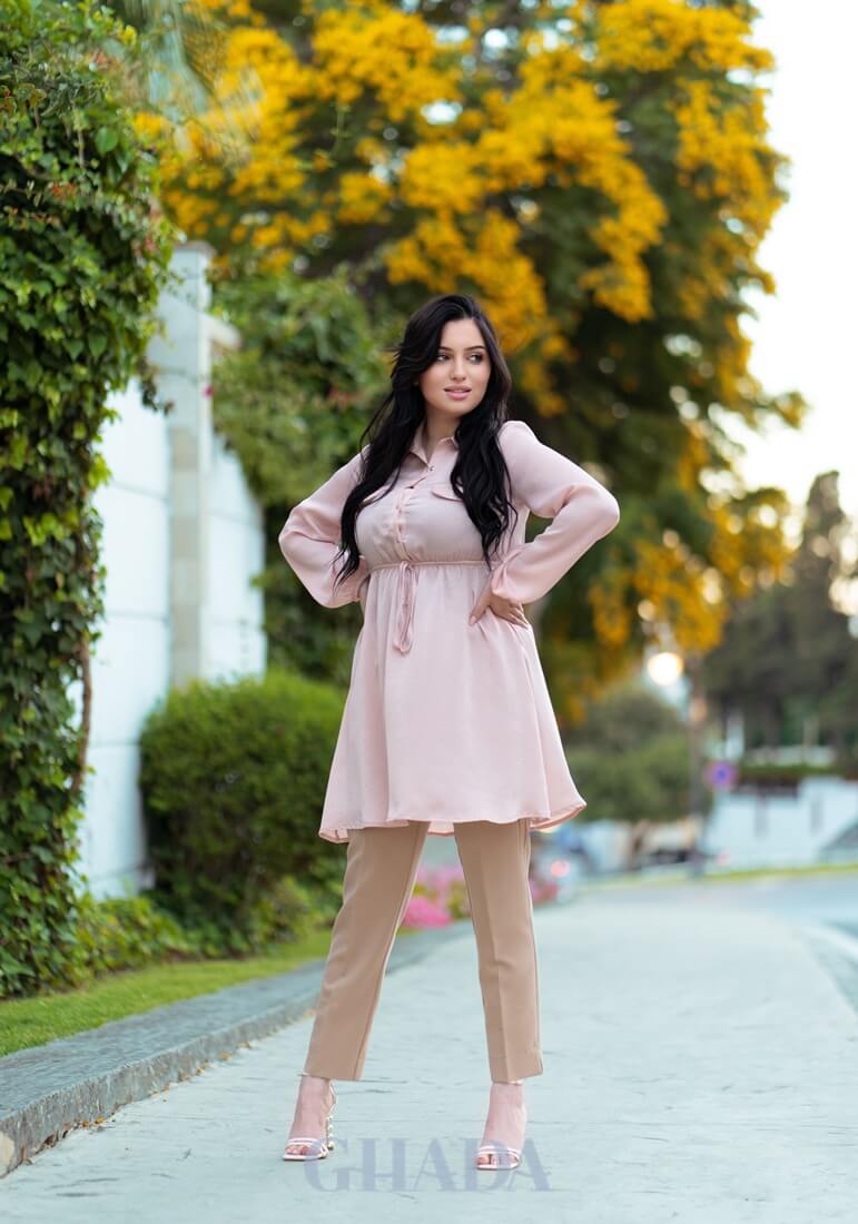 Chemise satinée en rose bebe