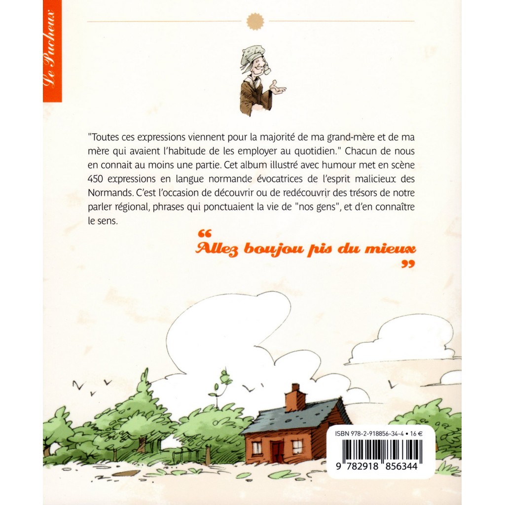 « Toutes ces expressions viennent pour la majorité de ma grand-mère et de ma mère qui avait l’habitude de l’employer au quotidien. » Chacun de nous en connait au moins une partie. Cet album illustré avec humour met en scène 450 expressions en langue normande évocatrices de l’esprit malicieux des Normands. C’est l’occasion de découvrir ou de redécouvrir des trésors de notre parler régional, phrases qui ponctuaient la vie de « nos gens », et d’en connaître le sens.