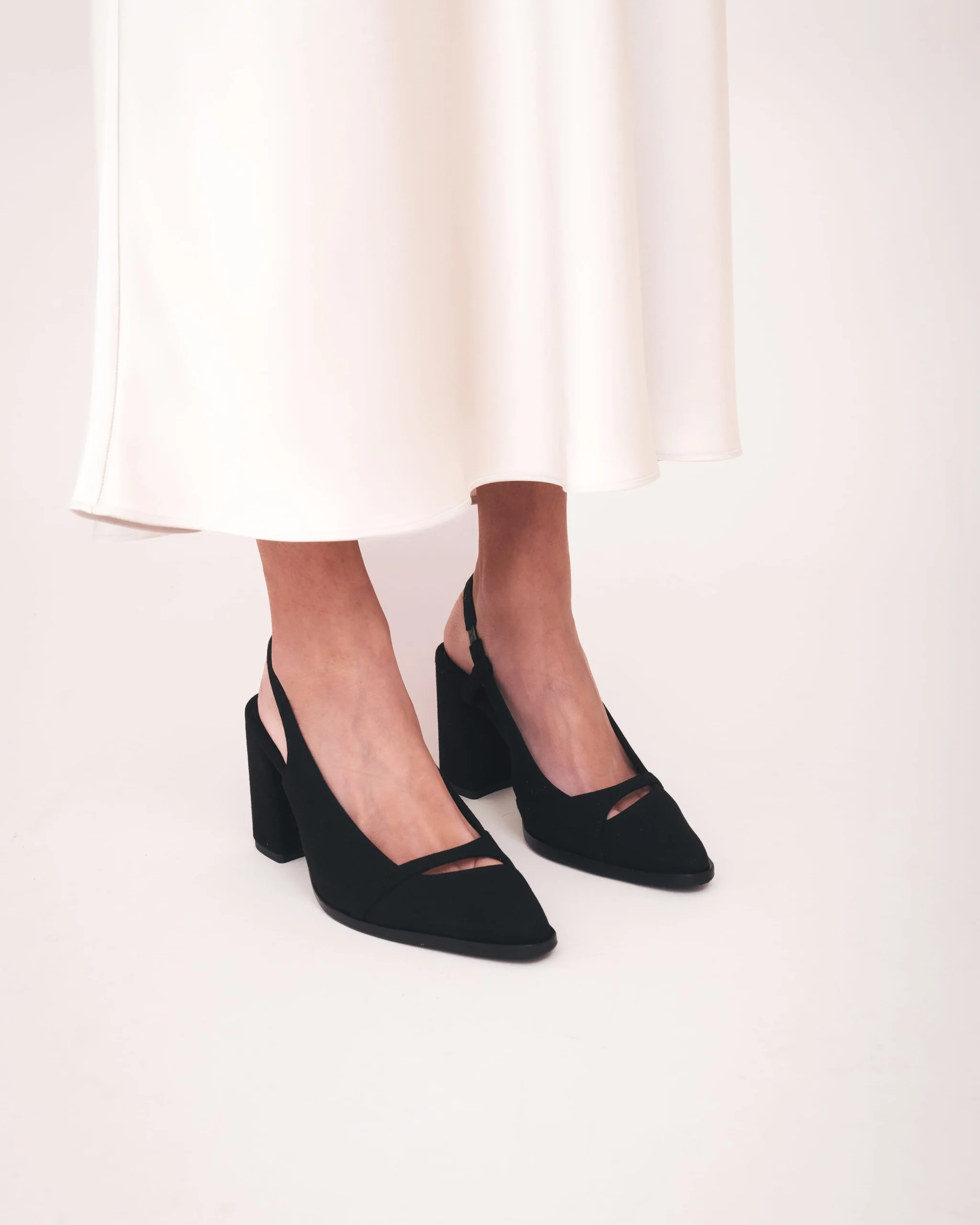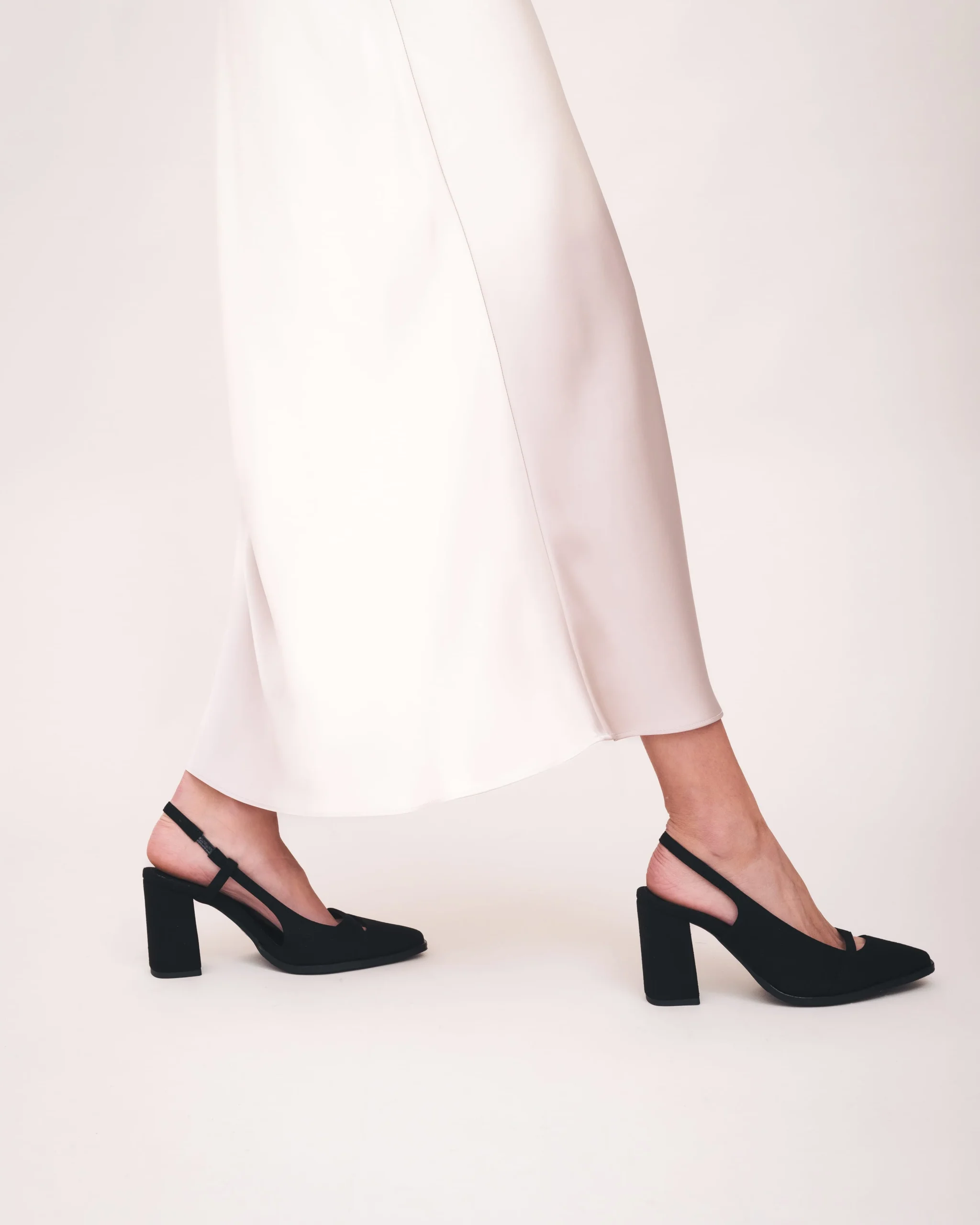 Ember é um sapato slingback vegano de salto alto para mulher, produzido em microsuede macio. O salto largo de 9 cm garante estabilidade e conforto, ideal para uso diário ou ocasiões especiais.