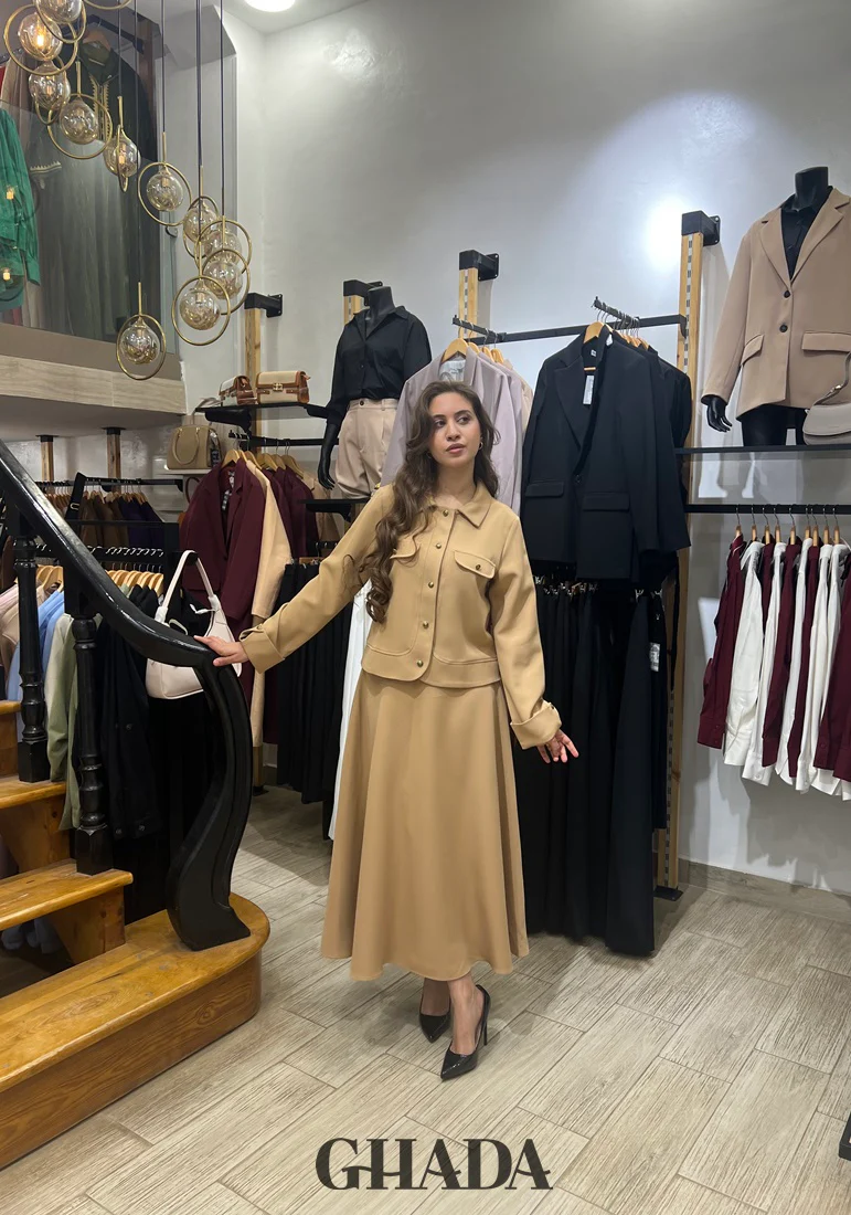 Ensemble avec jupe en beige sable