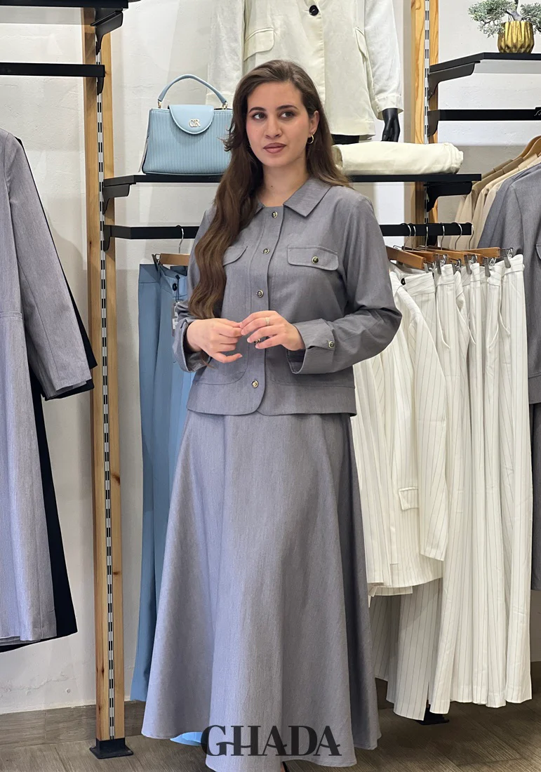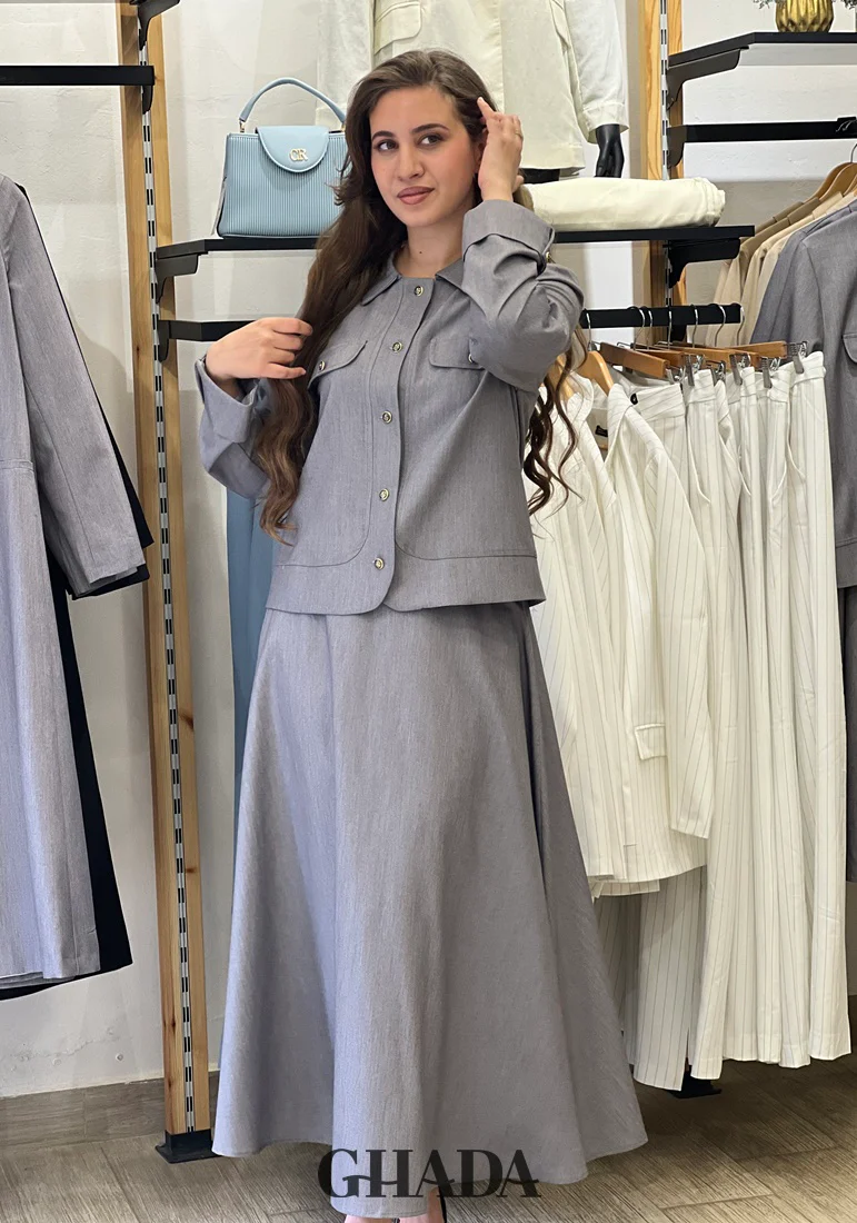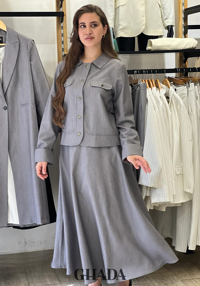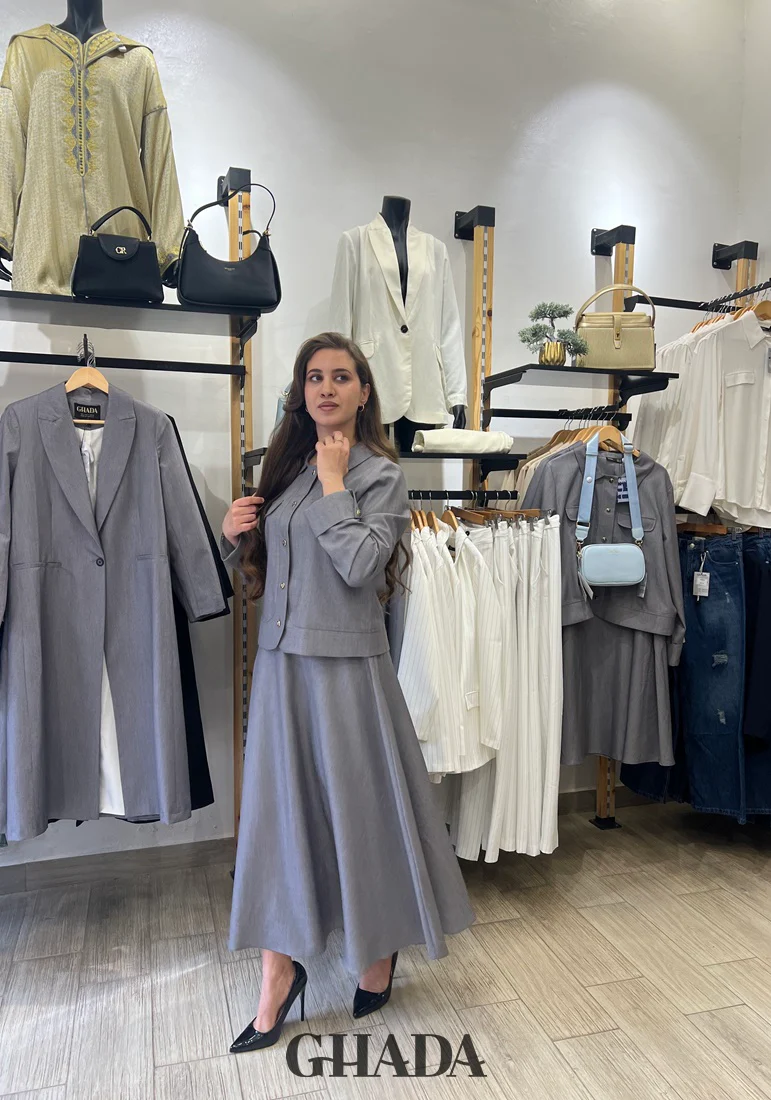 Soyez le premier à laisser votre avis sur “Ensemble avec jupe en gris”