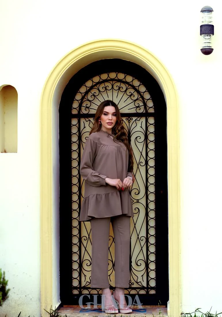 Ensemble chemisier et pantalon en beige foncé tissu crepe importé de très bonne qualité la chemise avec un col militaire en cravate avec des plis. pantalon coupe droite avec élastique sur la taille. S M L XL XXL 36 38 40 42 44 Épaules 48 49 50 51 52 Tour de poitrine 58 60 62 […]