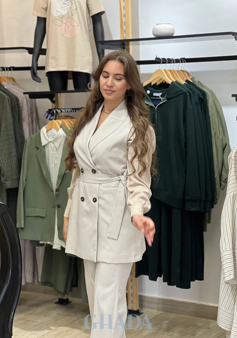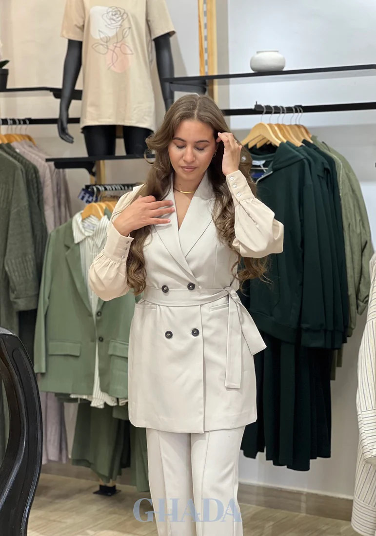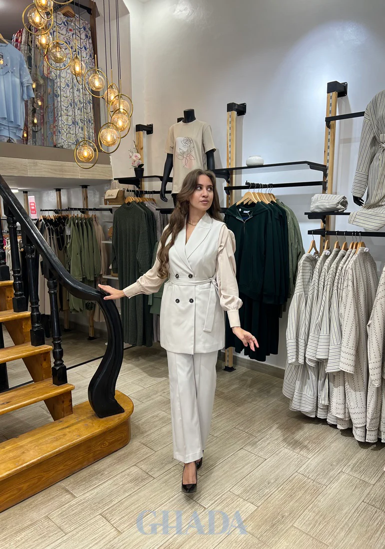 Ensemble gilet – pantalon en beige