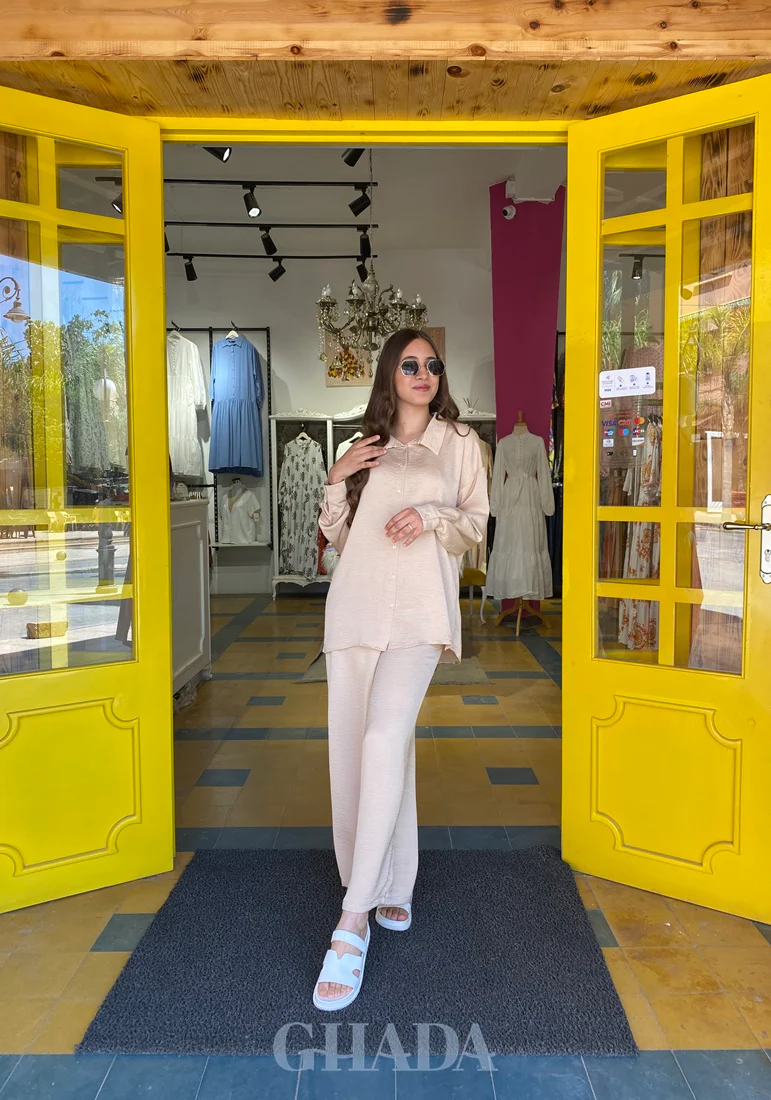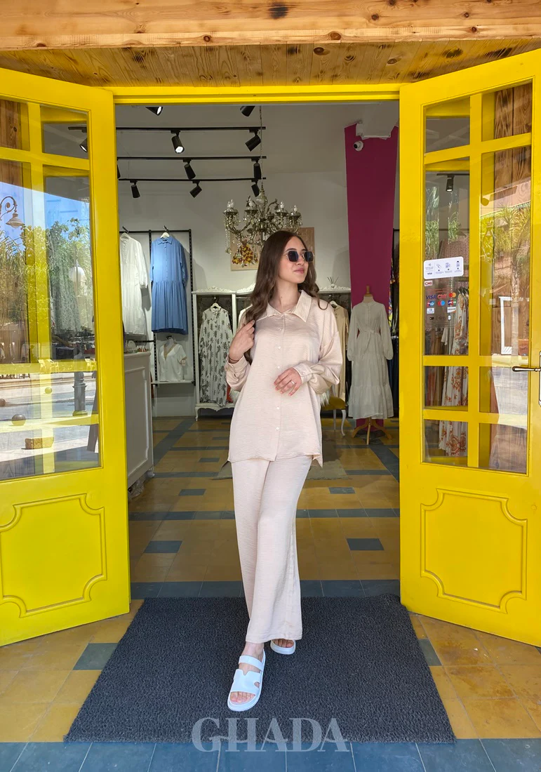 Ensemble jupe culotte -chemisier en beige