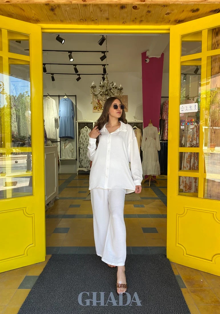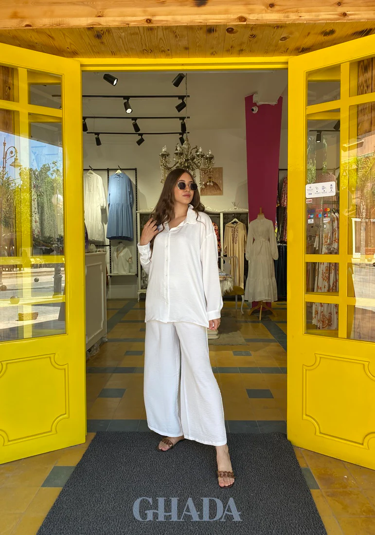 Ensemble jupe culotte -chemisier en blanc