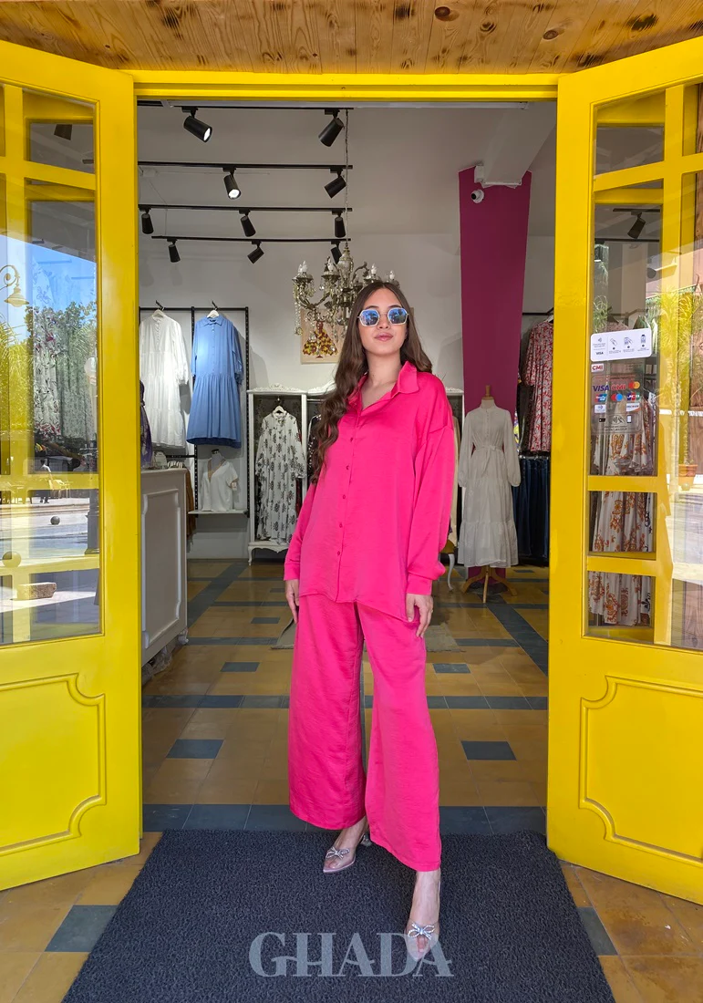 Ensemble jupe culotte -chemisier en rose fuchsia