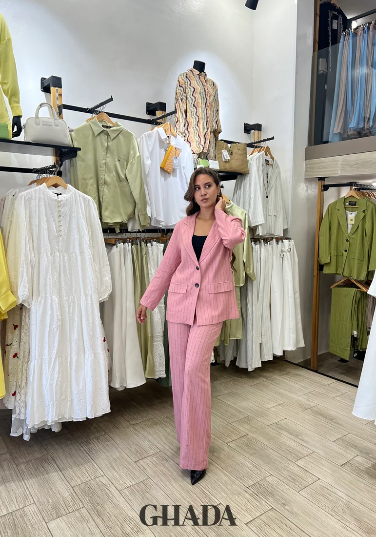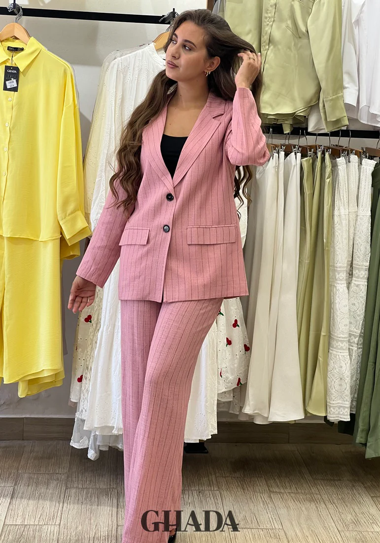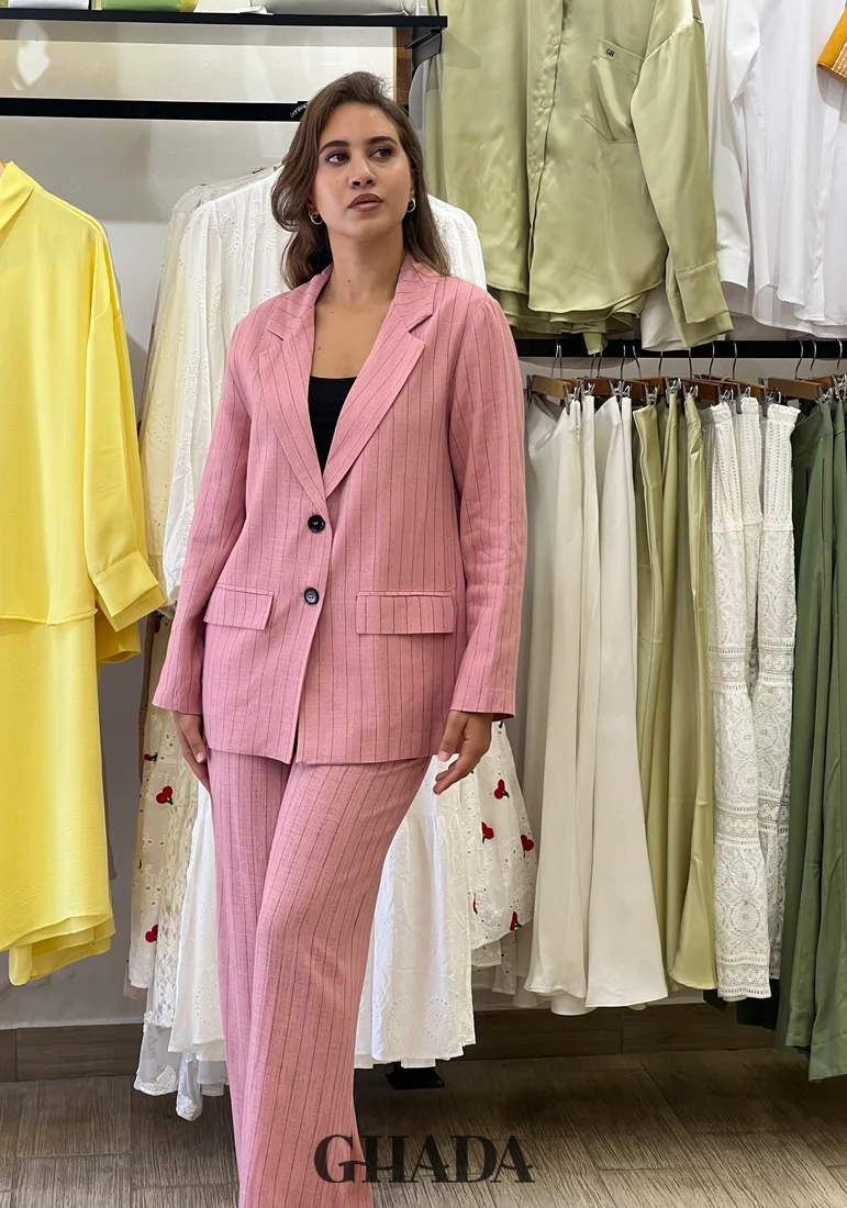 Ensemble tailleur en lin à rayures
