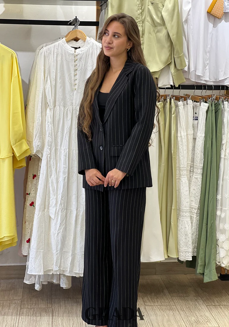 Ensemble tailleur en lin à rayures