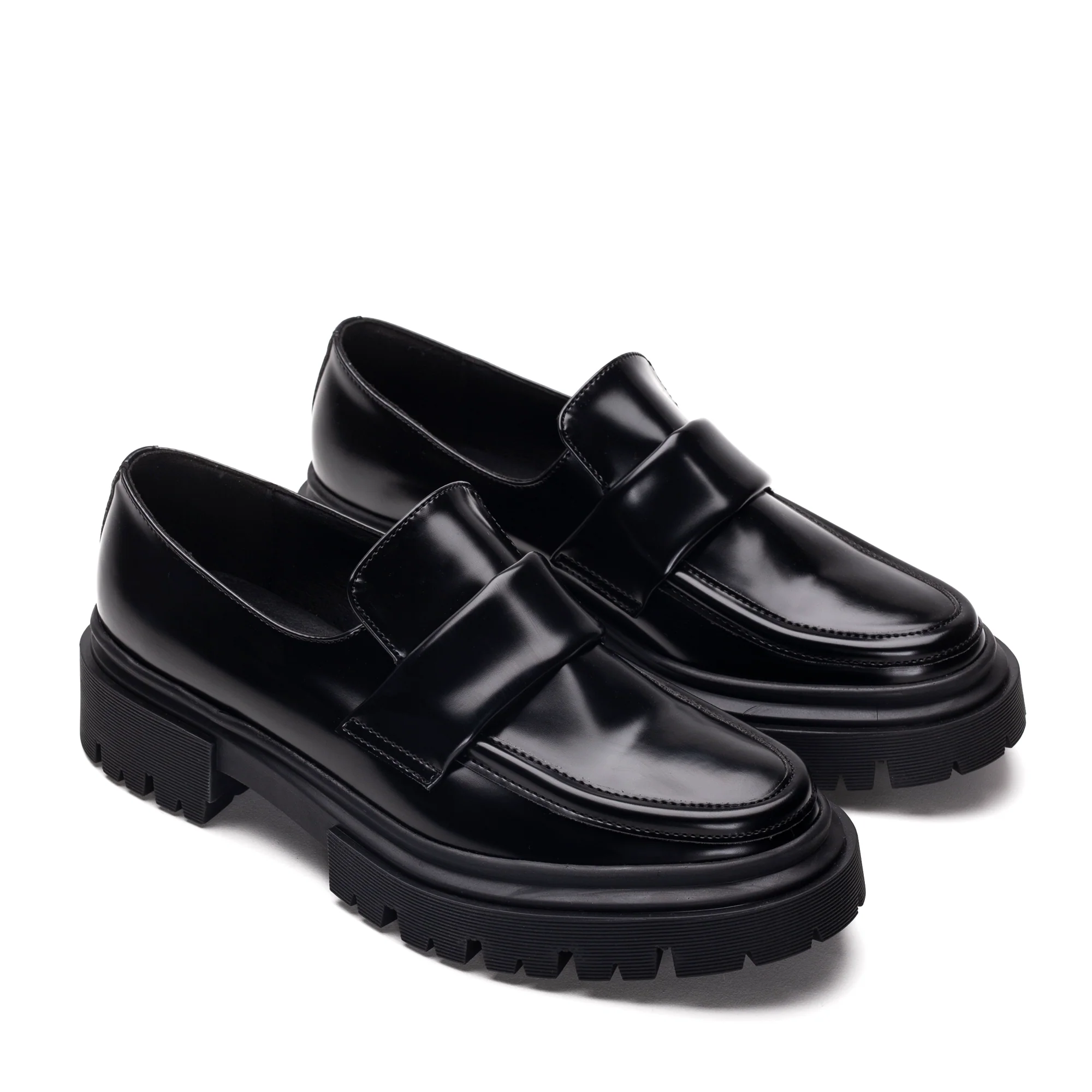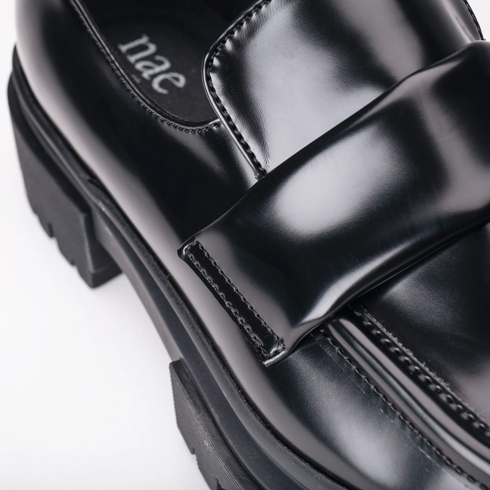 Compre online Esel Black, os mocassins com uma tira decorativa sobre o peito do pé, feitos de couro vegano de alta qualidade: um material sustentável, resistente à água, leve, muito durável e livre de crueldade.