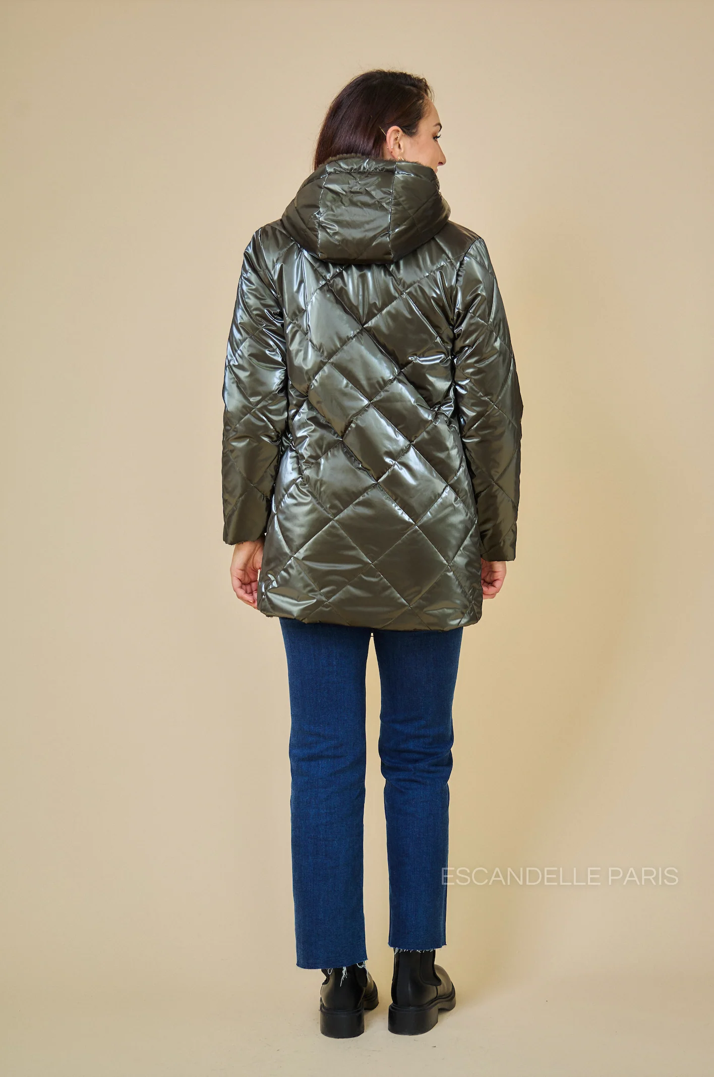 - Parka longue matelassée réversible à capuche réglable