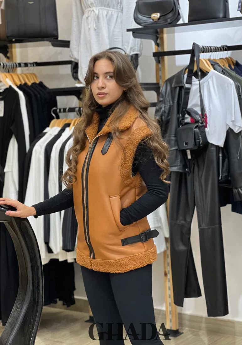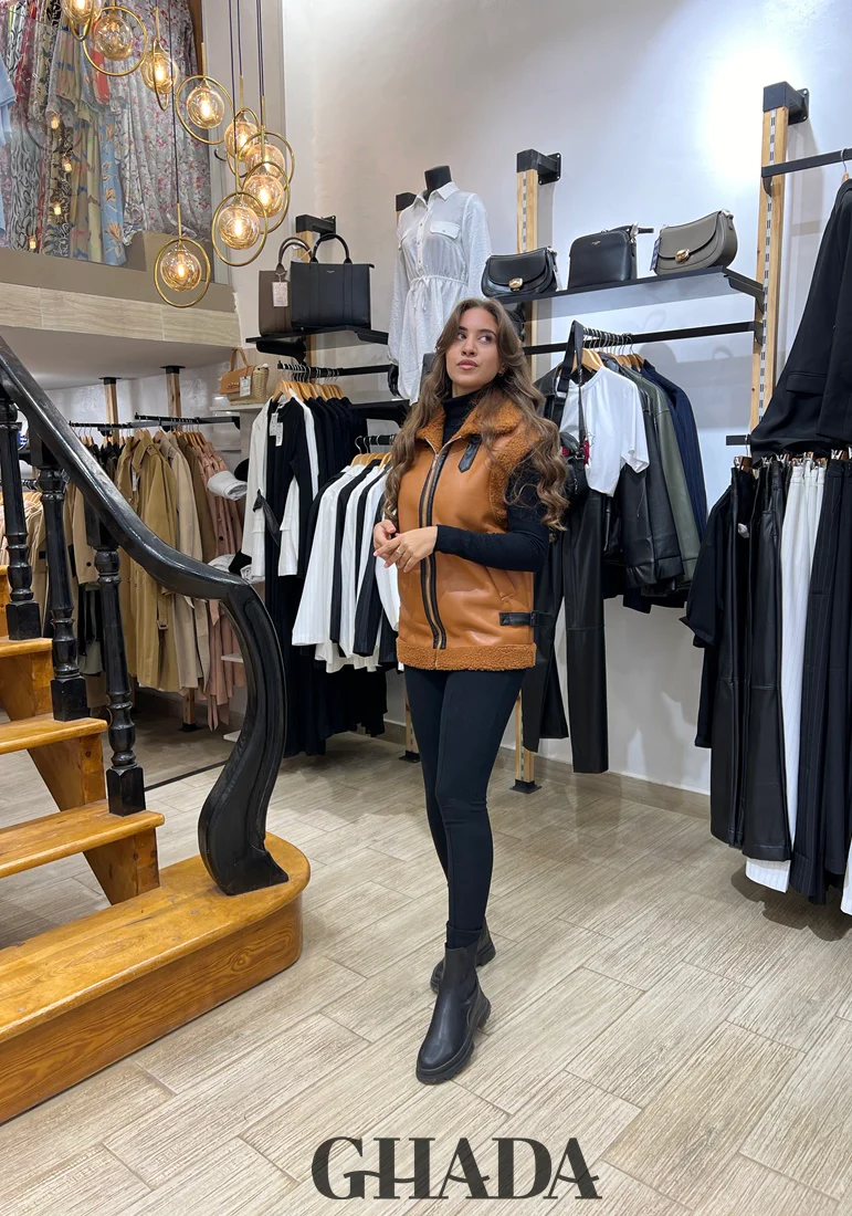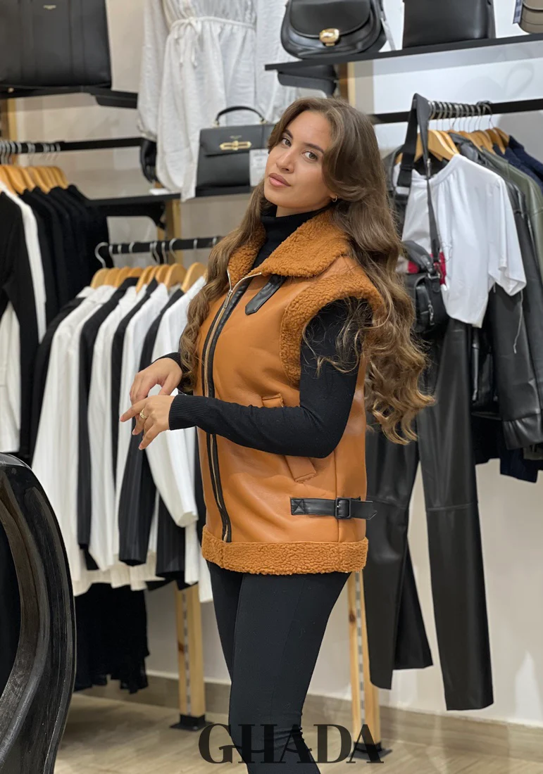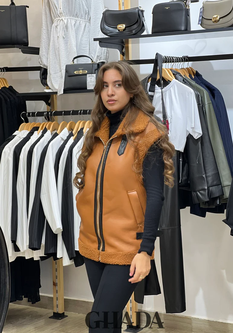 Inspirée du classique perfecto, ce gilet avec sa texture lisse et légèrement brillante offre le look chic.