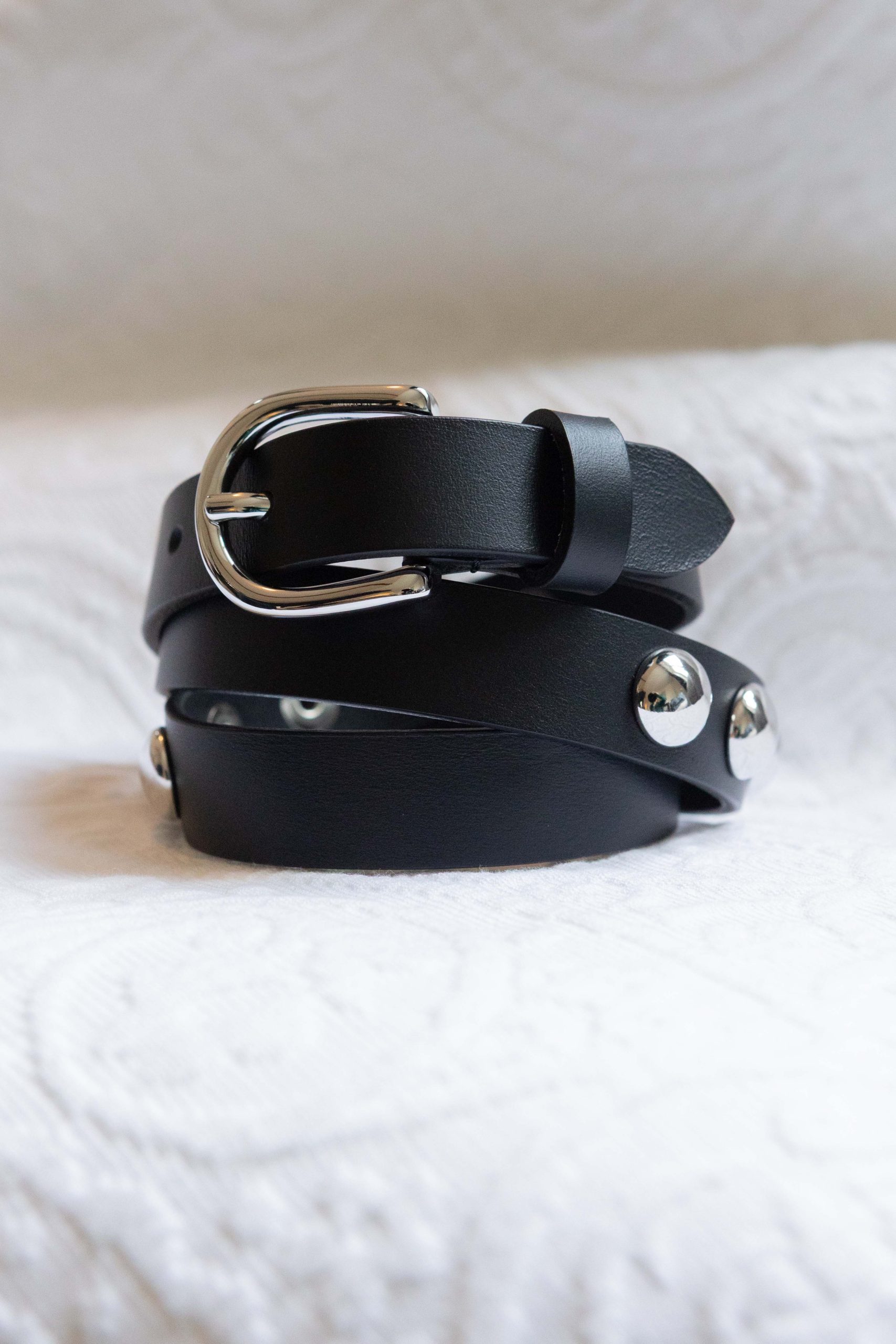 Die Rückseite des Gürtels bleibt glatt und schlicht – für optimalen Tragekomfort und vielseitige Kombinationsmöglichkeiten. Abgerundet wird das Design durch eine klassische silberne Schnalle. Ob zu Hosen, Jeans, Kleidern oder Röcken – dieser Gürtel verleiht jedem Look eine subtile, moderne Note.