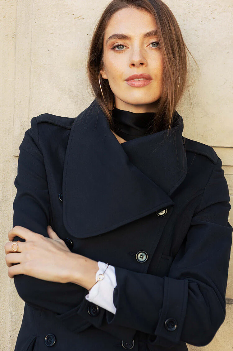 Renée ist der ideale Begleiter für die Übergangszeit. Die gefütterte Jacke zeichnet sich durch den umgeschlagenen Kragen, die doppelte Knopfreihe und den schön taillierten Schnitt aus. Die Einsätze am Saum sorgen für einen außergewöhnlichen Look und eine feminine Silhouette. Gefertigt aus robuster Baumwolle schützt Sie die Jacke vor Wind und Kälte.Tragen Sie die Jacke zu […]
