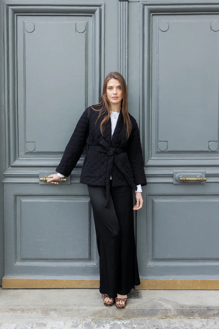 Diese elegante schwarze Steppjacke kombiniert Komfort und Stil, perfekt für kühlere Tage. Leicht gepolstert und mit einem subtilen Steppmuster versehen, bietet sie einen modernen, strukturierten Look.Die lockere Passform und der verstellbare Bindegürtel betonen die Taille und sorgen für eine schmeichelhafte und bequeme Silhouette.Mit ihren tiefen Taschen und dem weichen, warmen Stoff ist diese Jacke ideal […]