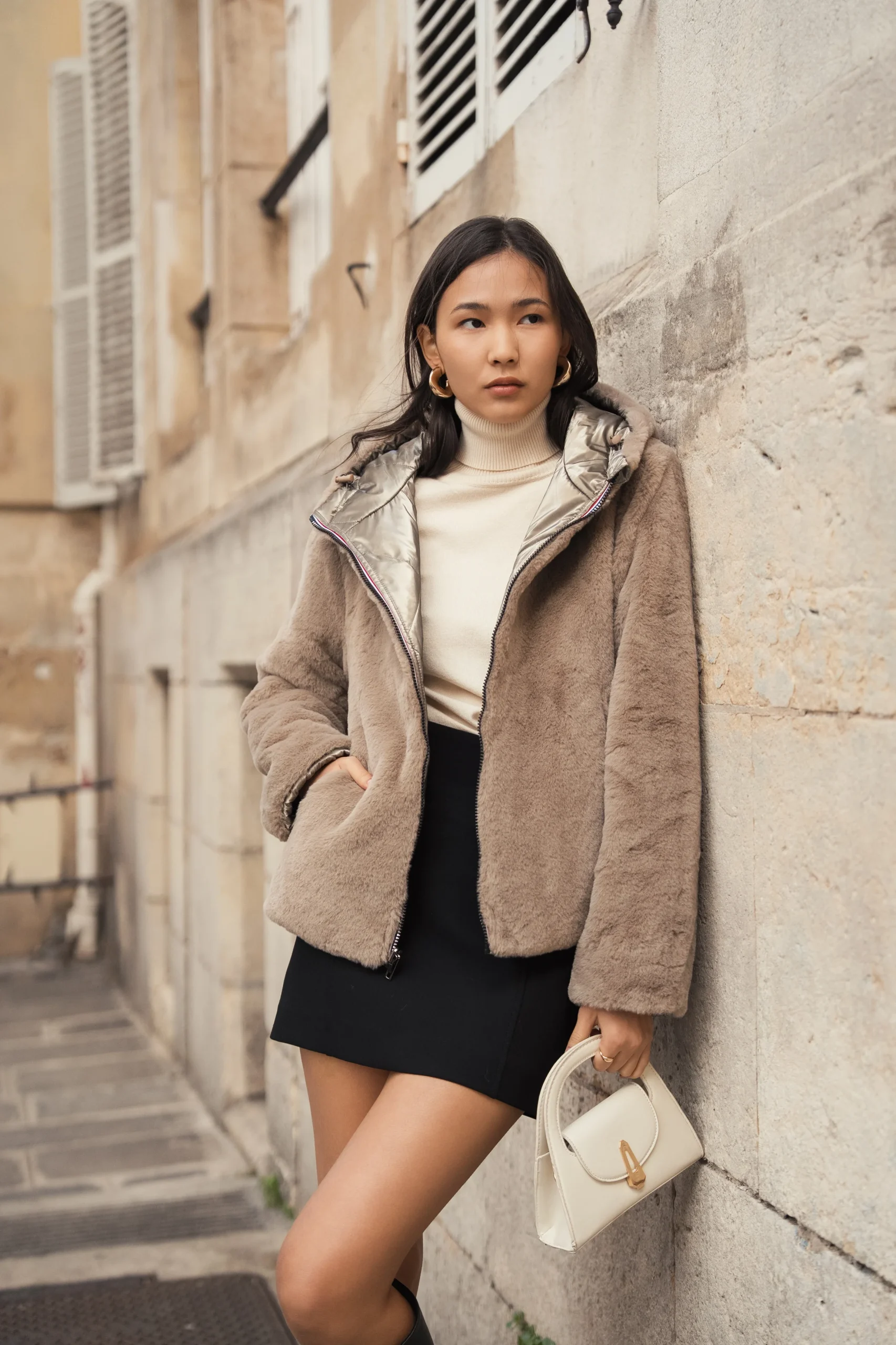 Parka courte fourrée matelassée réversible Coupe droite Fermeture zip sur le devant Deux poches latérales zippé devant Notre mannequin mesure 178cm et porte une taille S