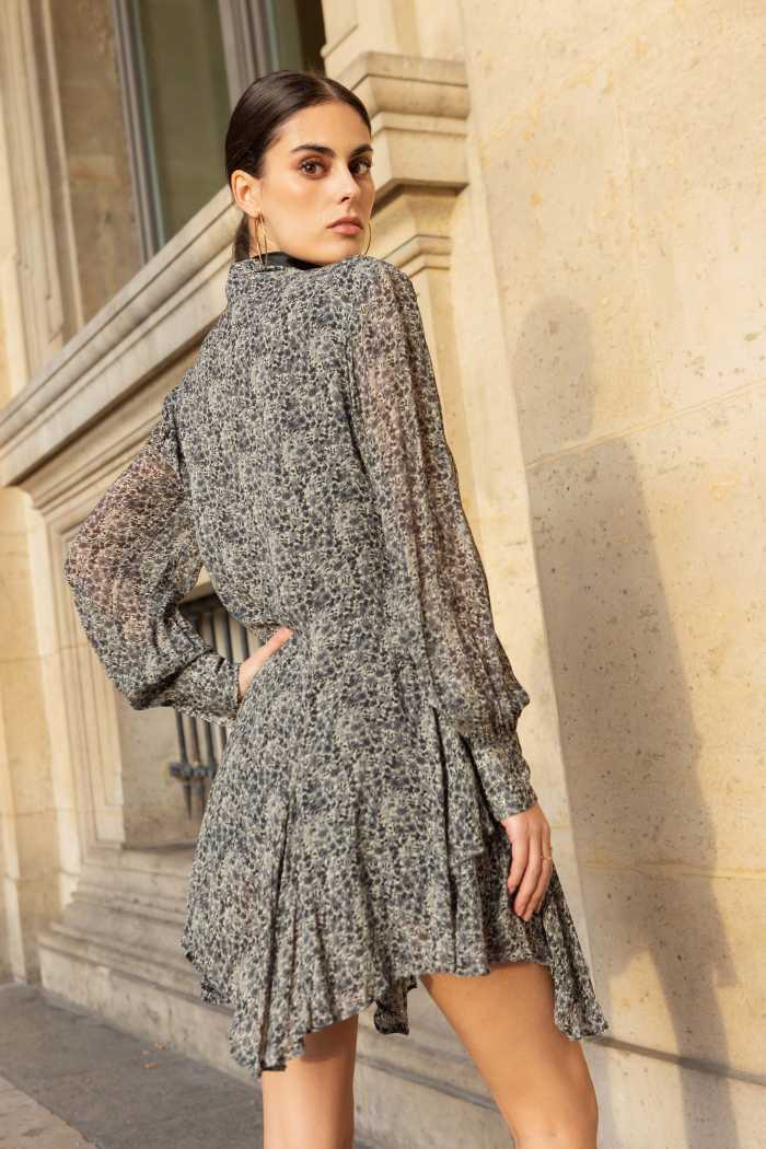 Das Kleid Celestine Julia ist aus luftigem Viskosechiffon gefertigt und mit romantischen graublauen Blumen bedruckt. Es hat Volants und Puffärmel, die seinen femininen Look betonen, und endet mit einem asymmetrischen Saum, der bei jedem Schritt dezent mitschwingt.Zusammensetzung: 100% ViskosePflegehinweis: Schonwaschprogramm bei 30°CGrössenempfehlung: Wir verwenden eine französische Grössentabelle. Eine französische Grösse 36 entspricht einer deutschen oder […]