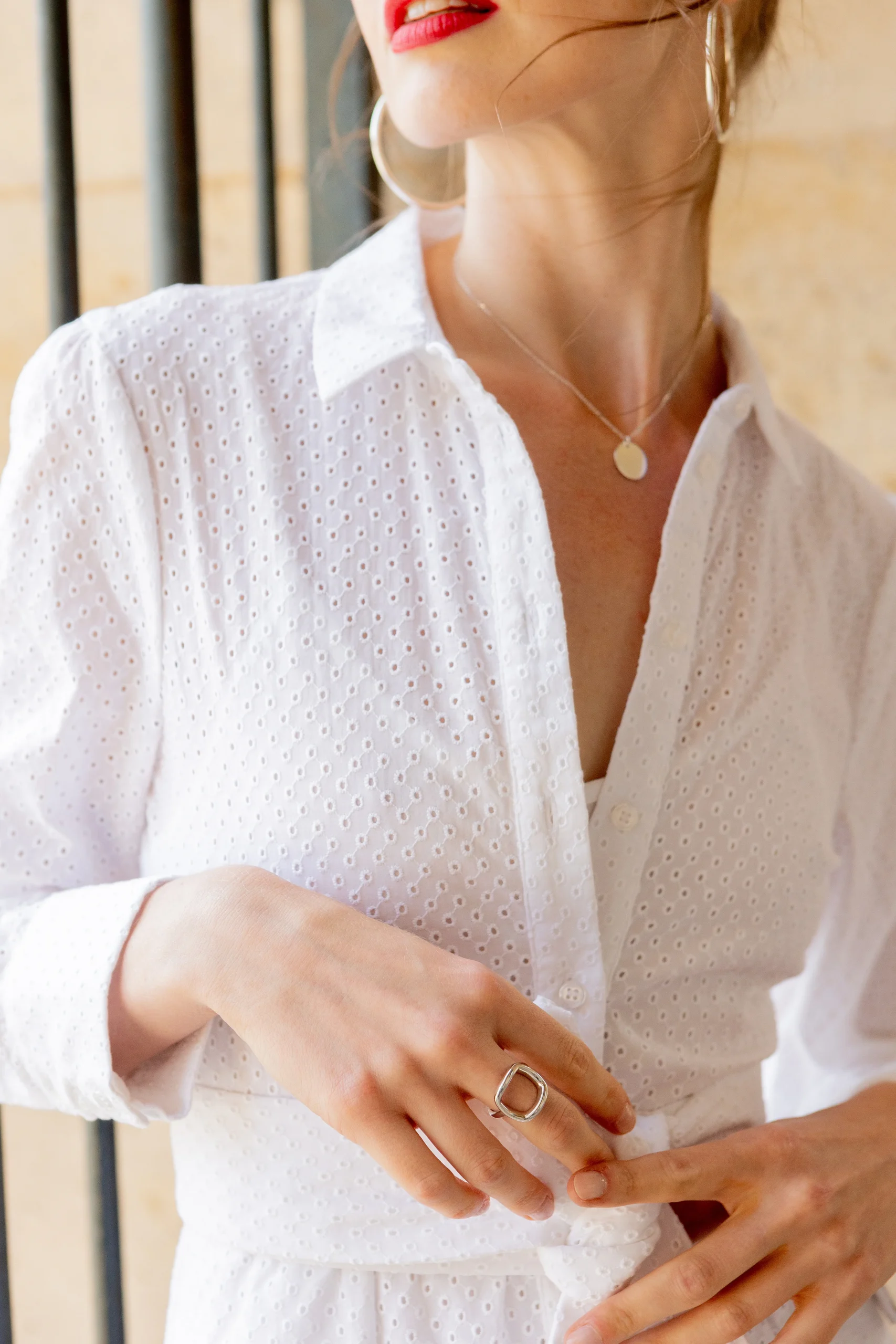 Das Emeline-Kleid ist so entworfen, dass es Ihre Silhouette betont. Tragen Sie es zugeknöpft, um Ihre Figur elegant hervorzuheben und die Taille sanft zu betonen, für einen gepflegten und raffinierten Look. Für einen modernen, entspannten Look tragen Sie es offen über einer Skinny-Jeans mit einem schwarzen Tanktop.