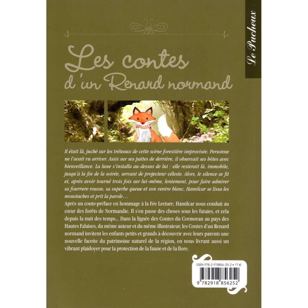 Après un conte-préface en hommage à la Fée Lecture, Hamilcar nous conduit au cœur des forêts de Normandie. Il s’en passe des choses sous les futaies, et cela depuis la nuit des temps.. Dans la lignée des Contes du Cormoran au pays des Hautes Falaises, du même auteur et du même illustrateur, les Contes d’un Renard normand invitent les enfants petits et grands à découvrir avec leurs parents une nouvelle facette du naturel de la région, en nous livrant aussi un vibrant plaidoyer pour la protection de la faune de la flore.
