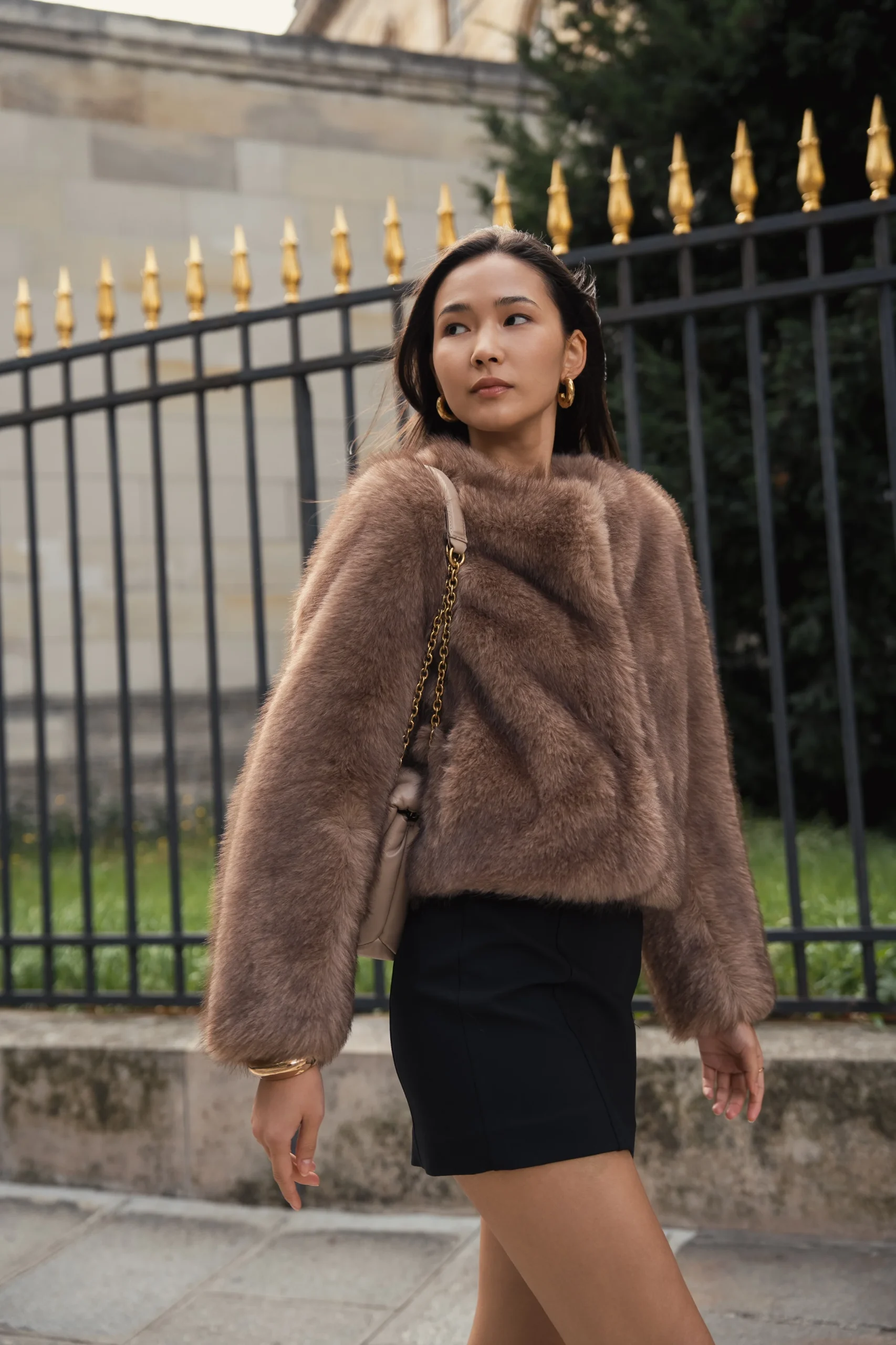 - Manteau fausse fourrure courte à col rond