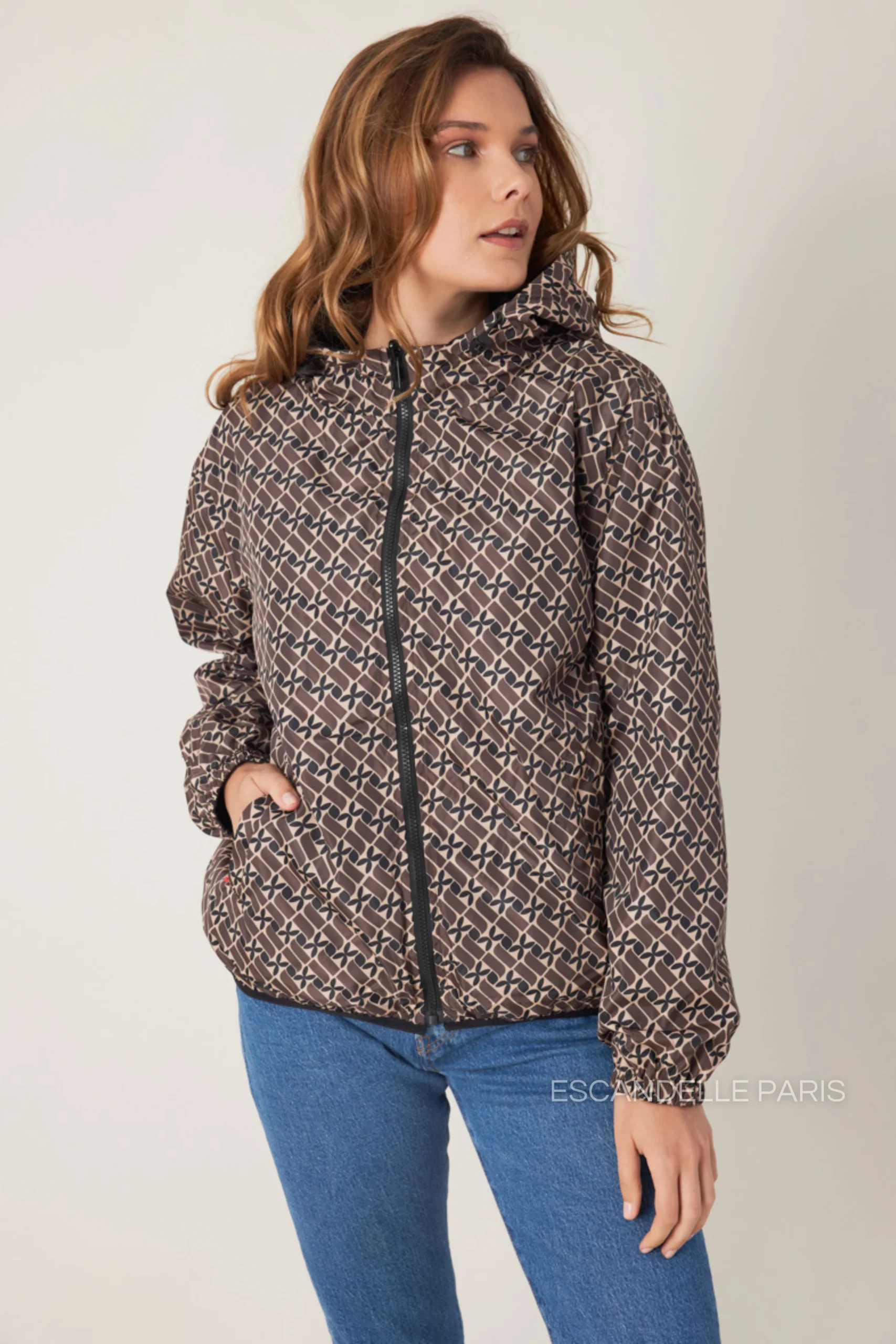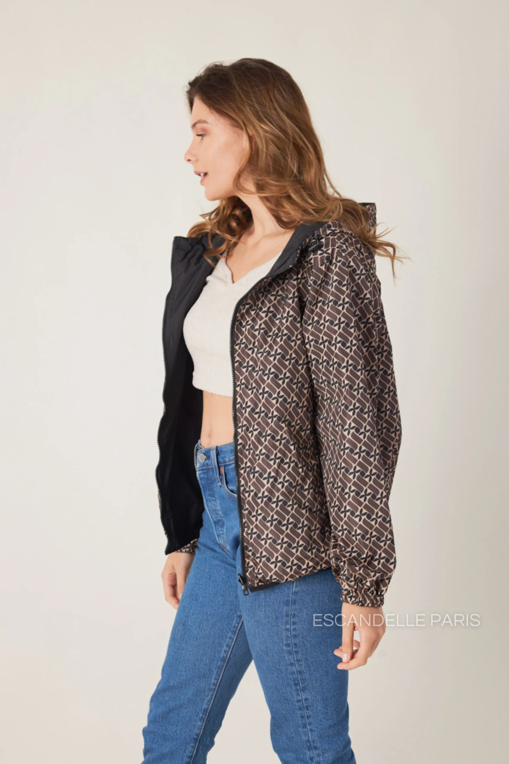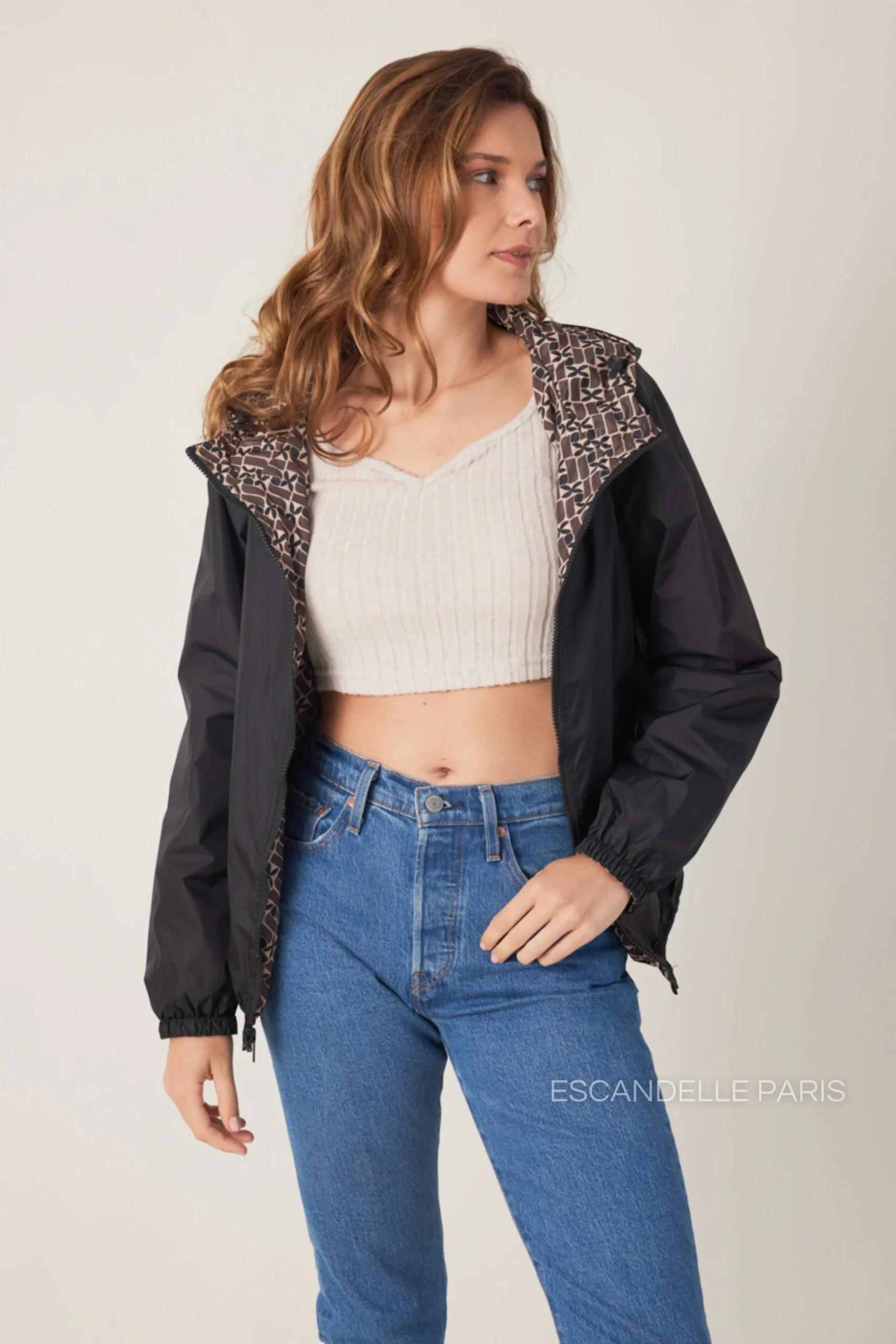 Parka courte imperméable Confortable, pratique et réversible Capuche Fermeture à glissière Poches latérales Notre mannequin mesure 173cm et porte une taille S