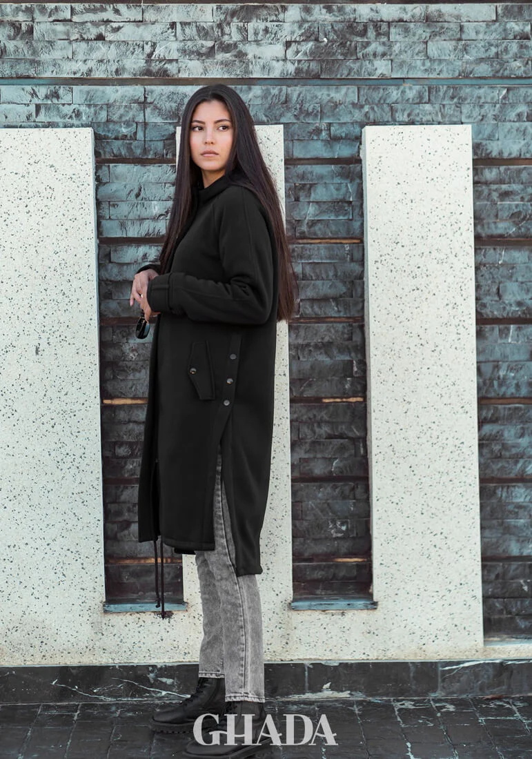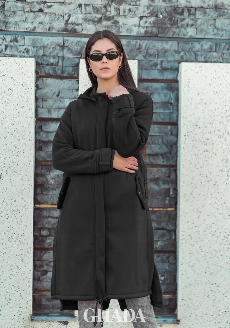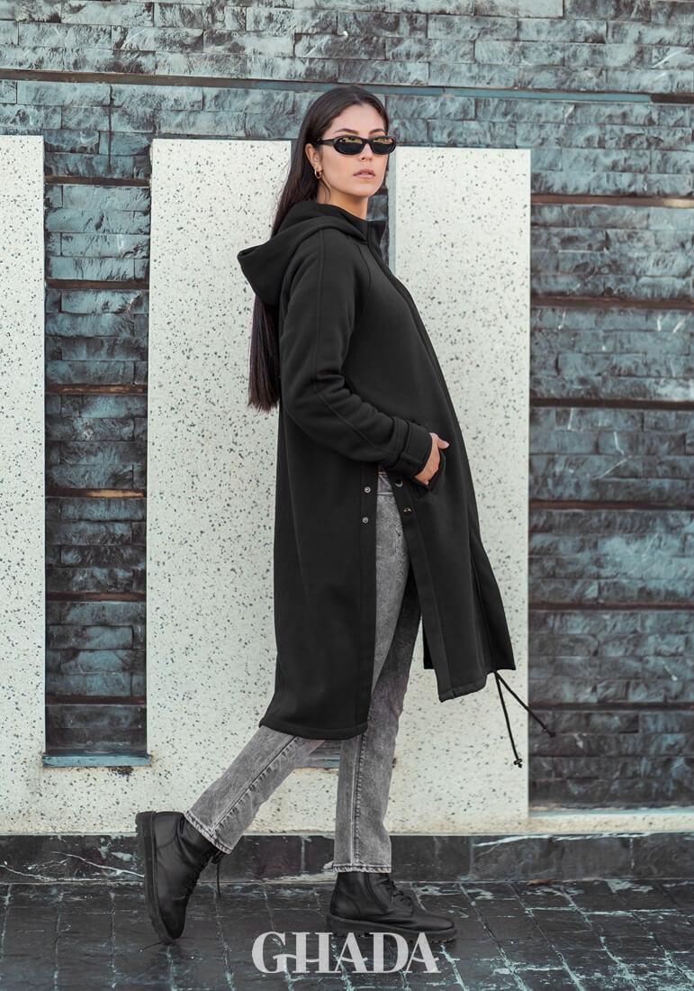 Manteau à capuche en noir