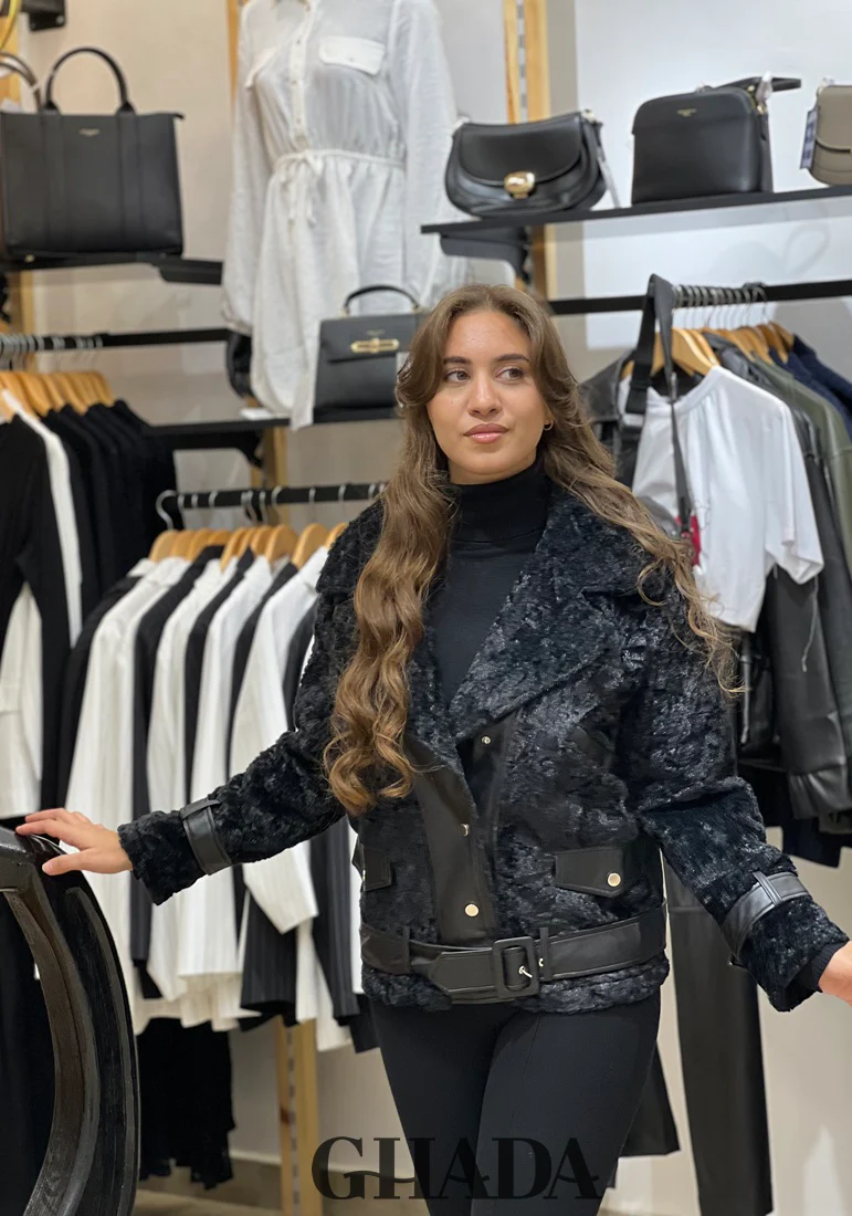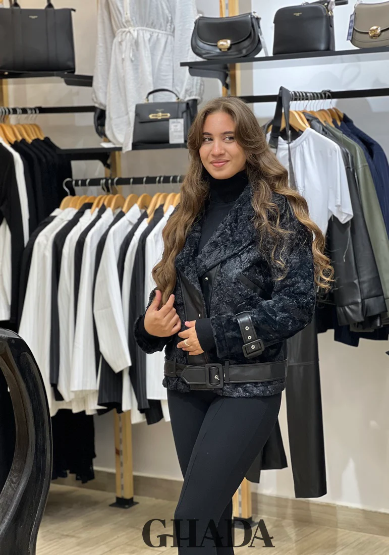 Manteau noir en duveteux