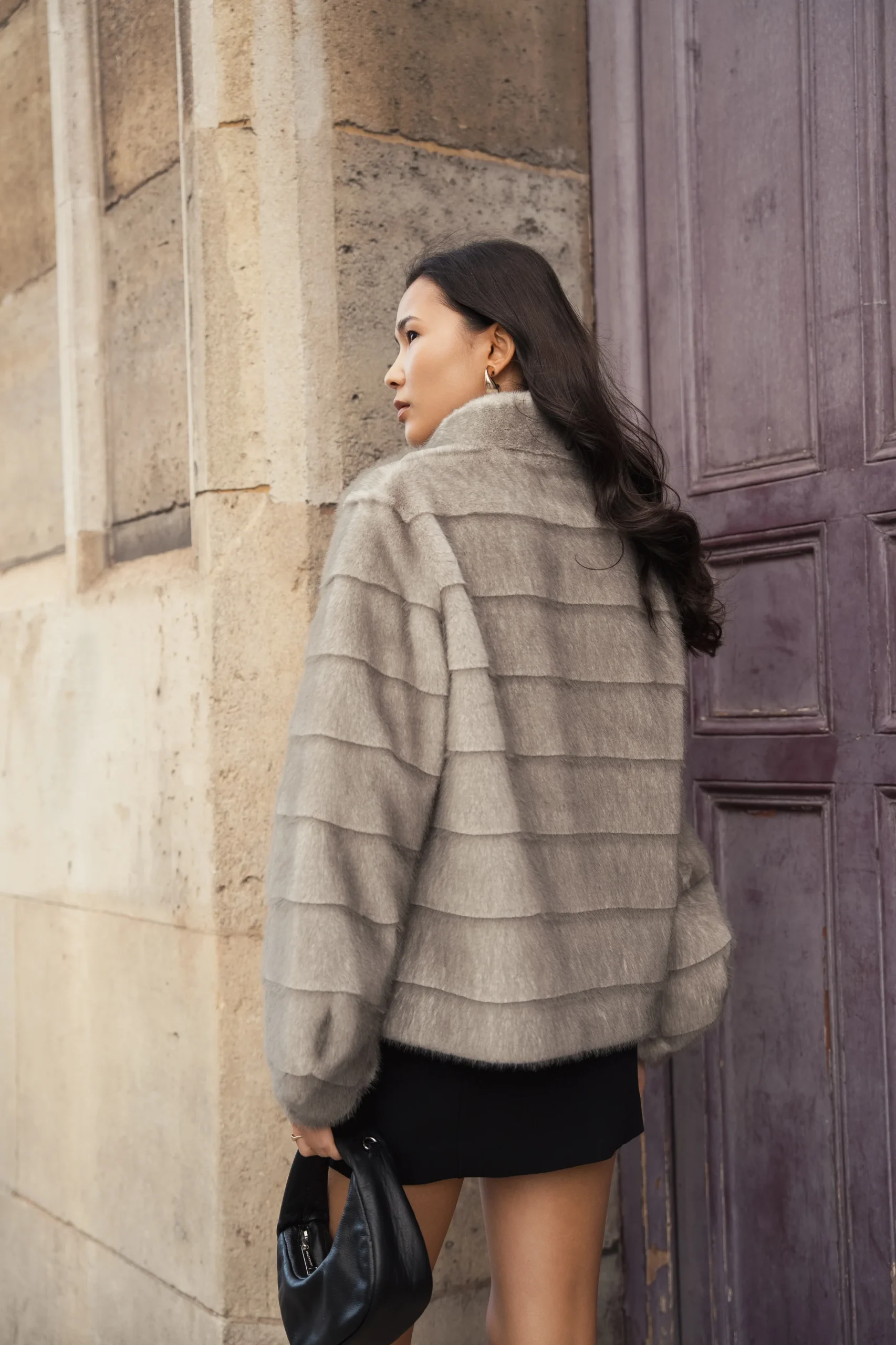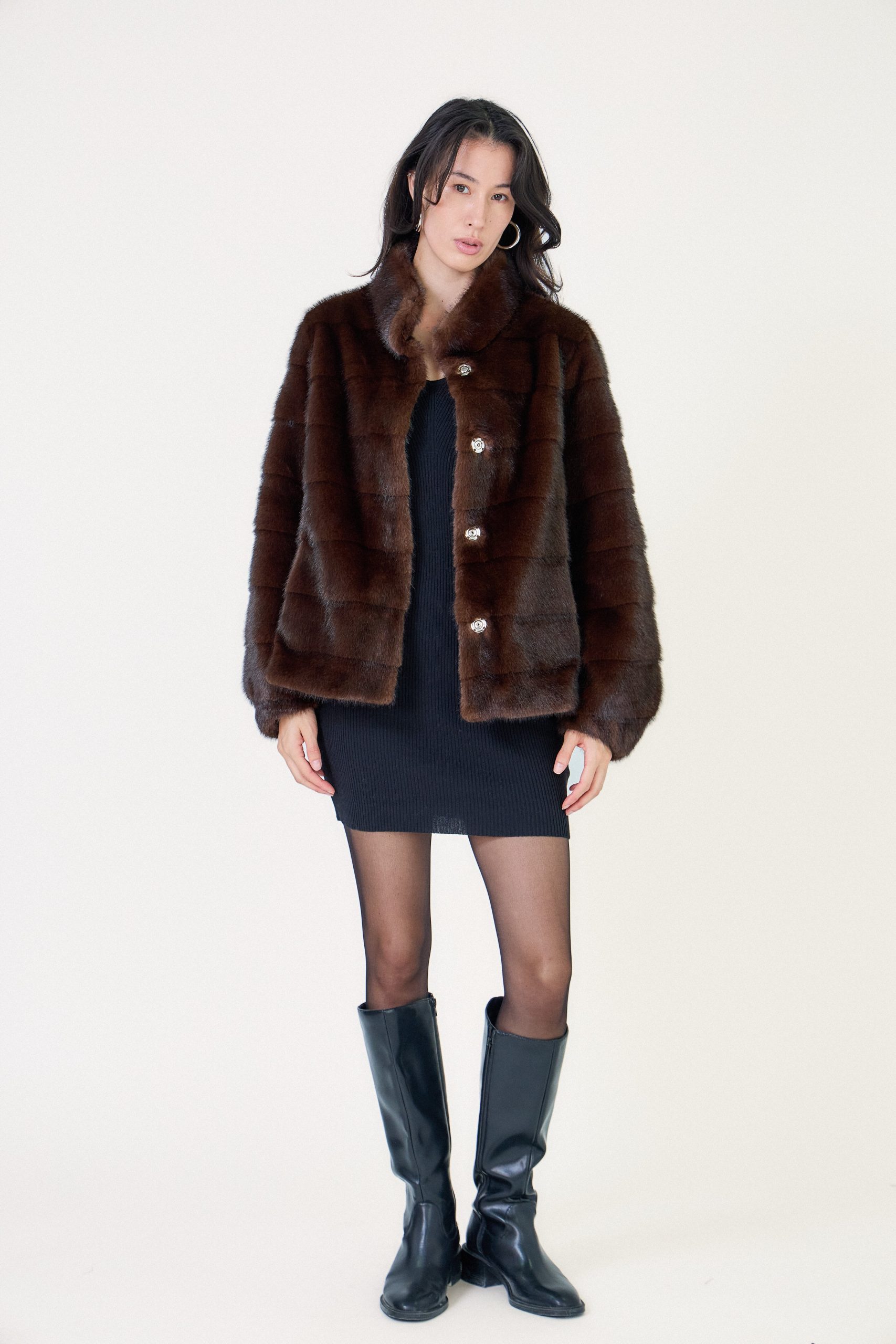 Manteau fausse fourrure Col montant Rayures coupées à la main, une à une Fermeture à boutons sur le devant Poches latérales Conseil taille : prenez une taille en dessous de votre taille habituelle Notre mannequin mesure 177cm et porte une taille S