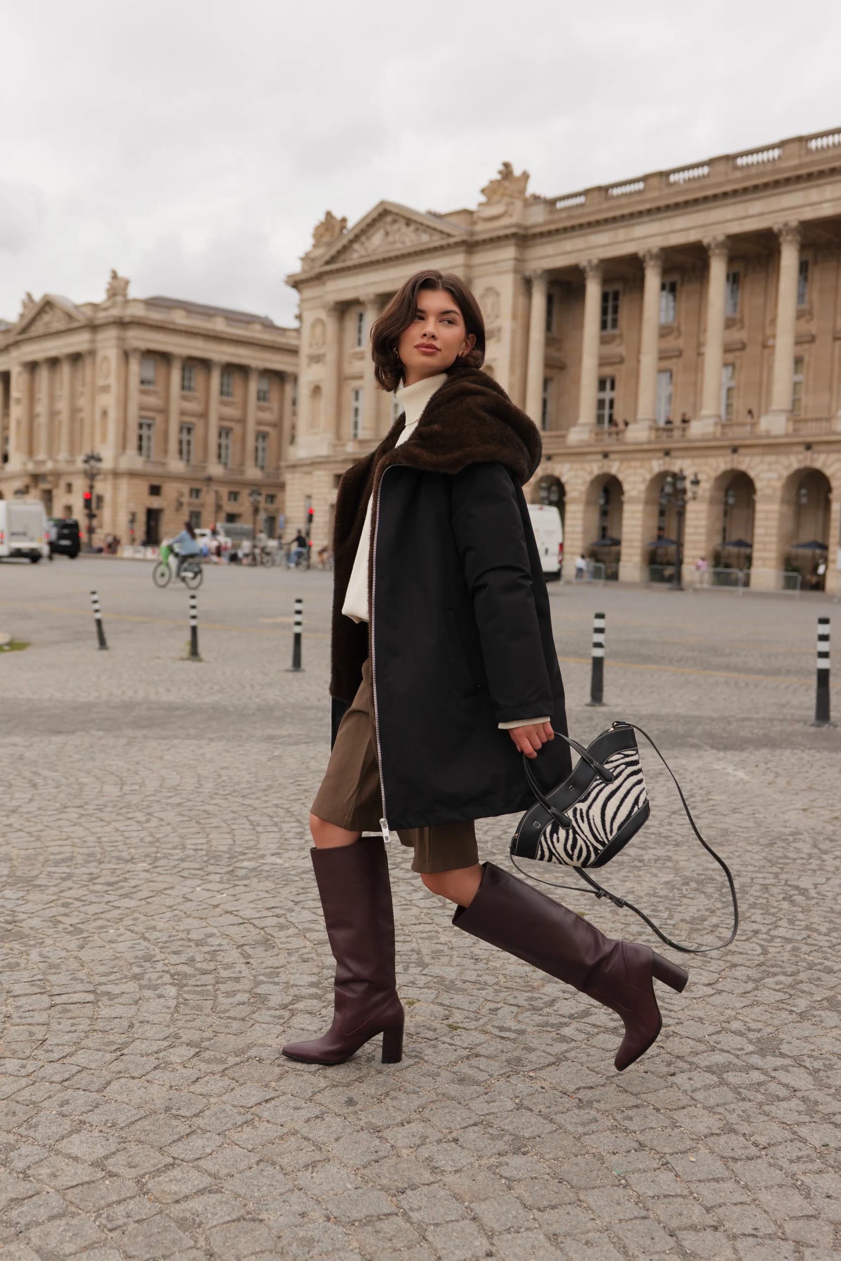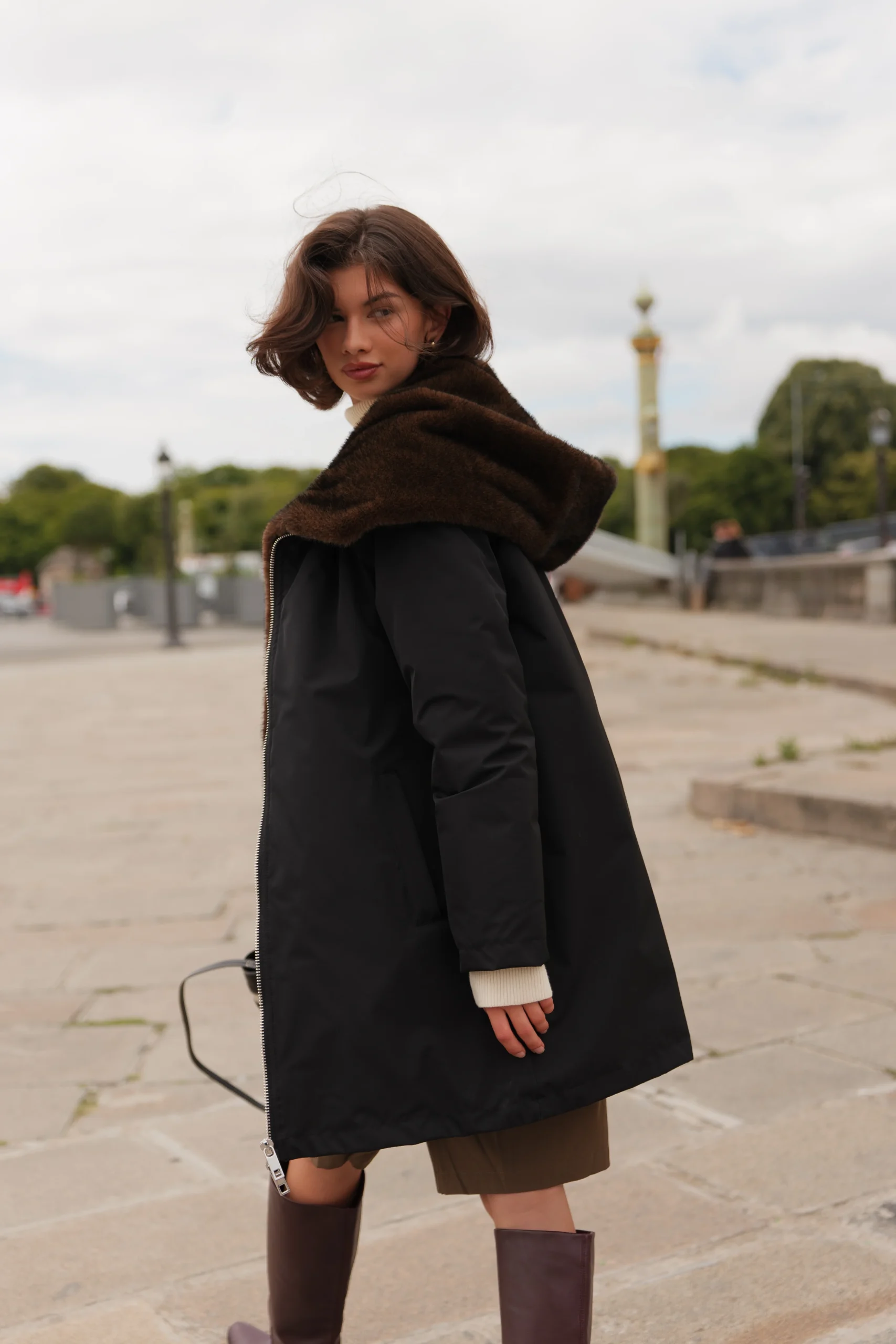 - Fourrure amovible au col et capuche