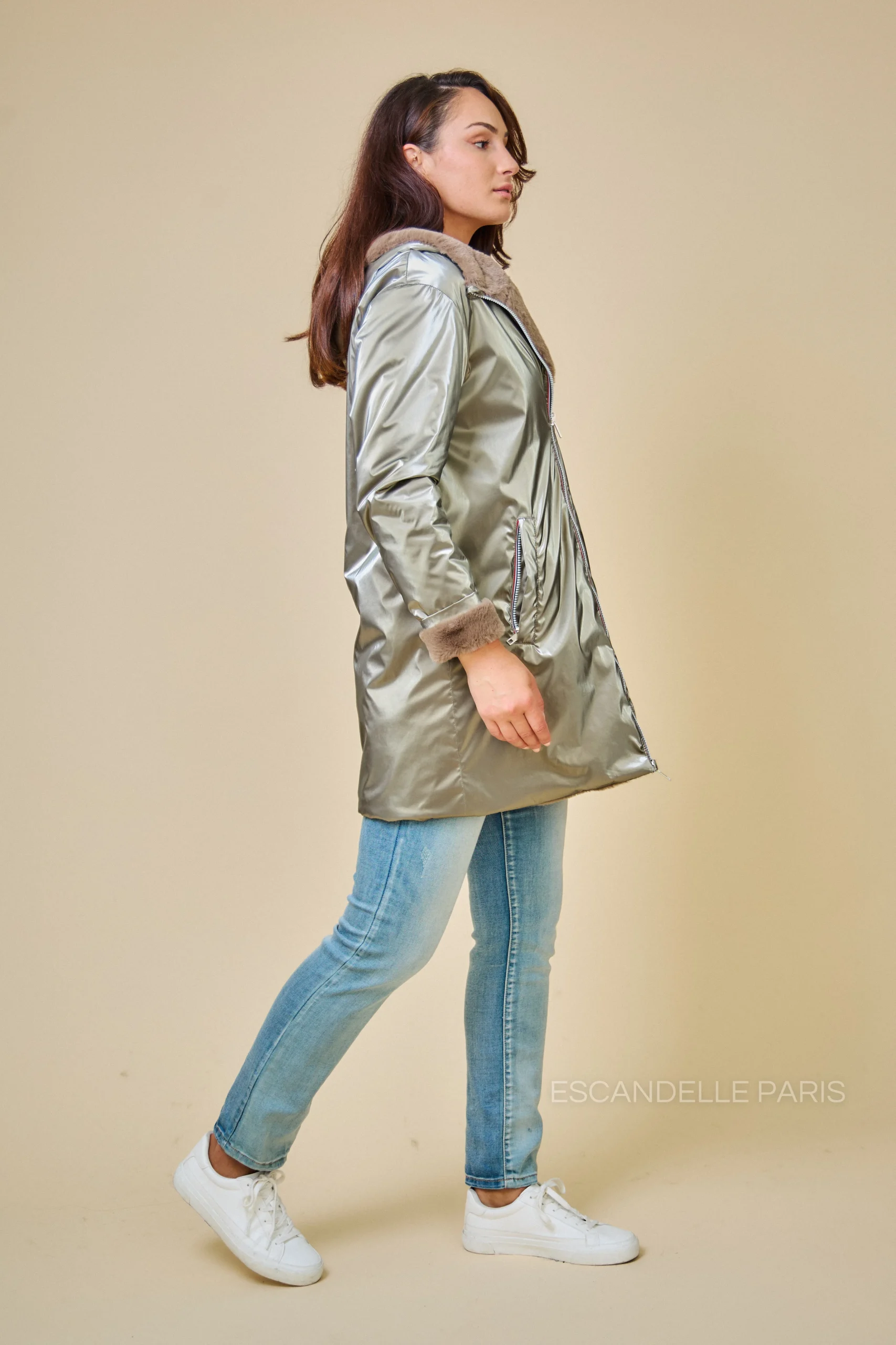 - Parka réversible en fausse fourrure réversible
