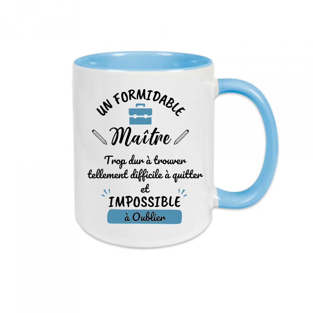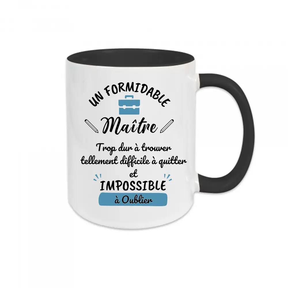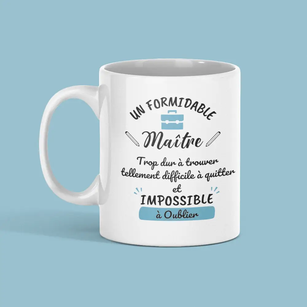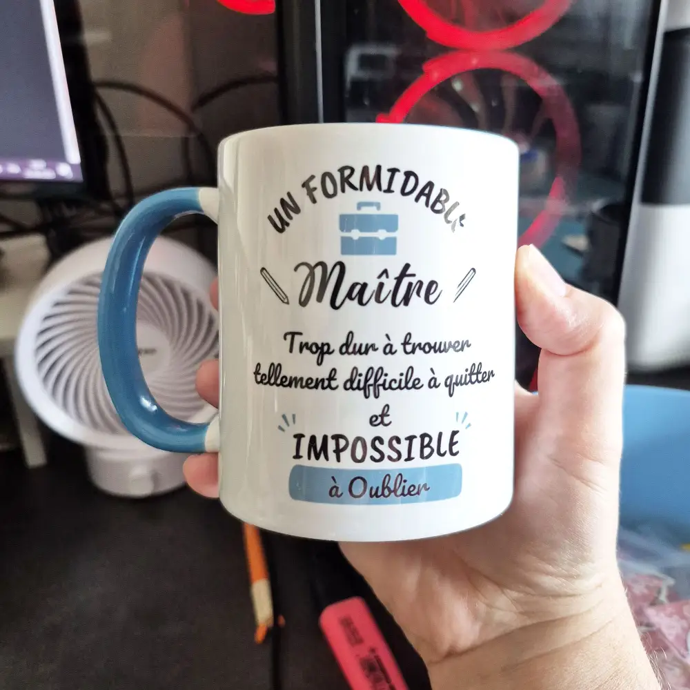 Ce mug céramique Un formidable maître trop dure à trouver de 330 ml est le support idéal pour mettre en valeur vos idées, messages ou visuels. Que ce soit pour un usage personnel, un cadeau original ou pour compléter votre collection, il combine qualité, résistance et rendu visuel impeccable.