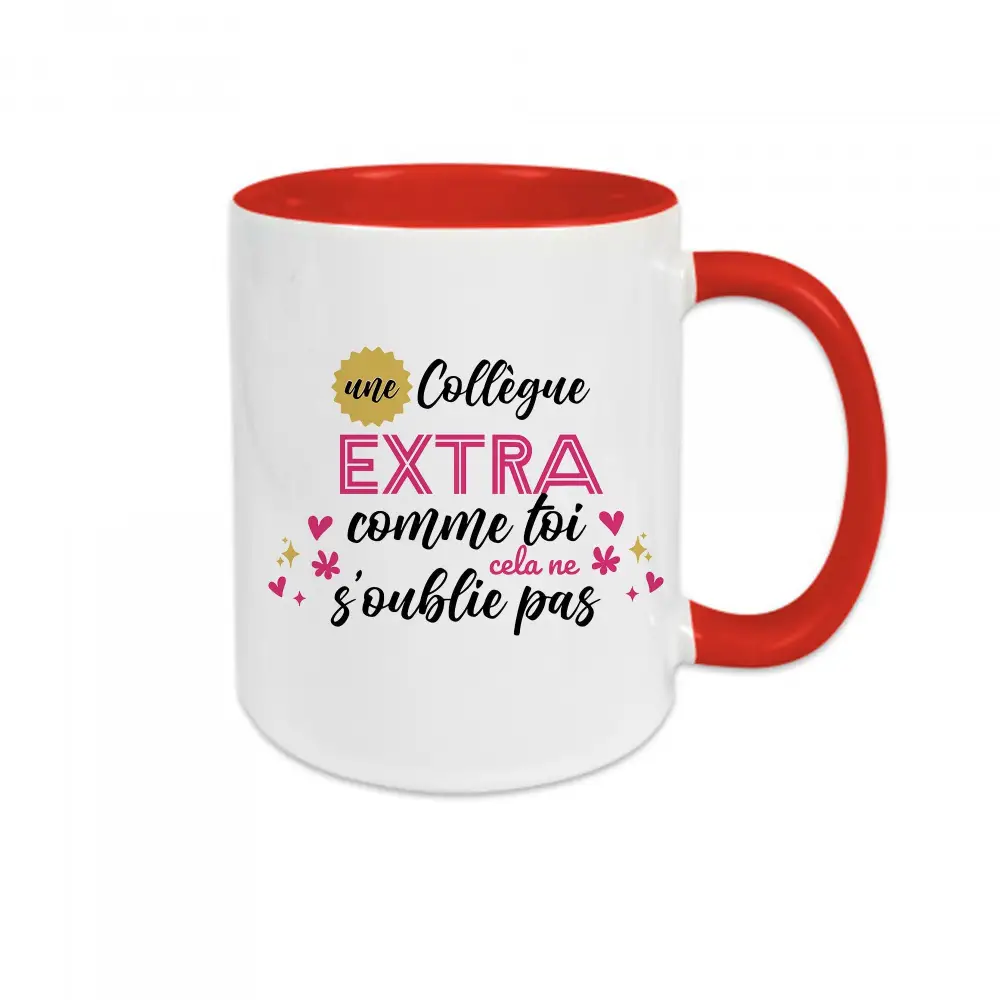Pour célébrer une collègue exceptionnelle qui rend le bureau plus agréable ! Ce mug céramique Une collègue extra comme toi cela ne s’oublie pas est parfait pour savourer son café, son thé ou son chocolat chaud tout en lui rappelant combien elle est appréciée. Un cadeau idéal pour remercier, motiver ou simplement faire sourire une collègue qui compte.