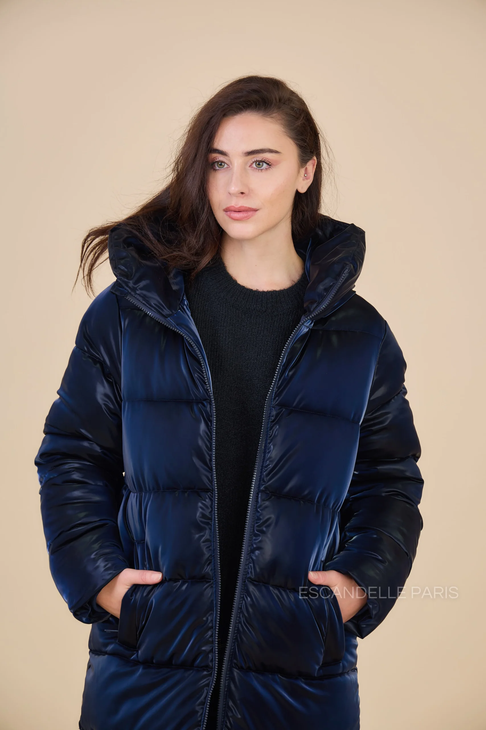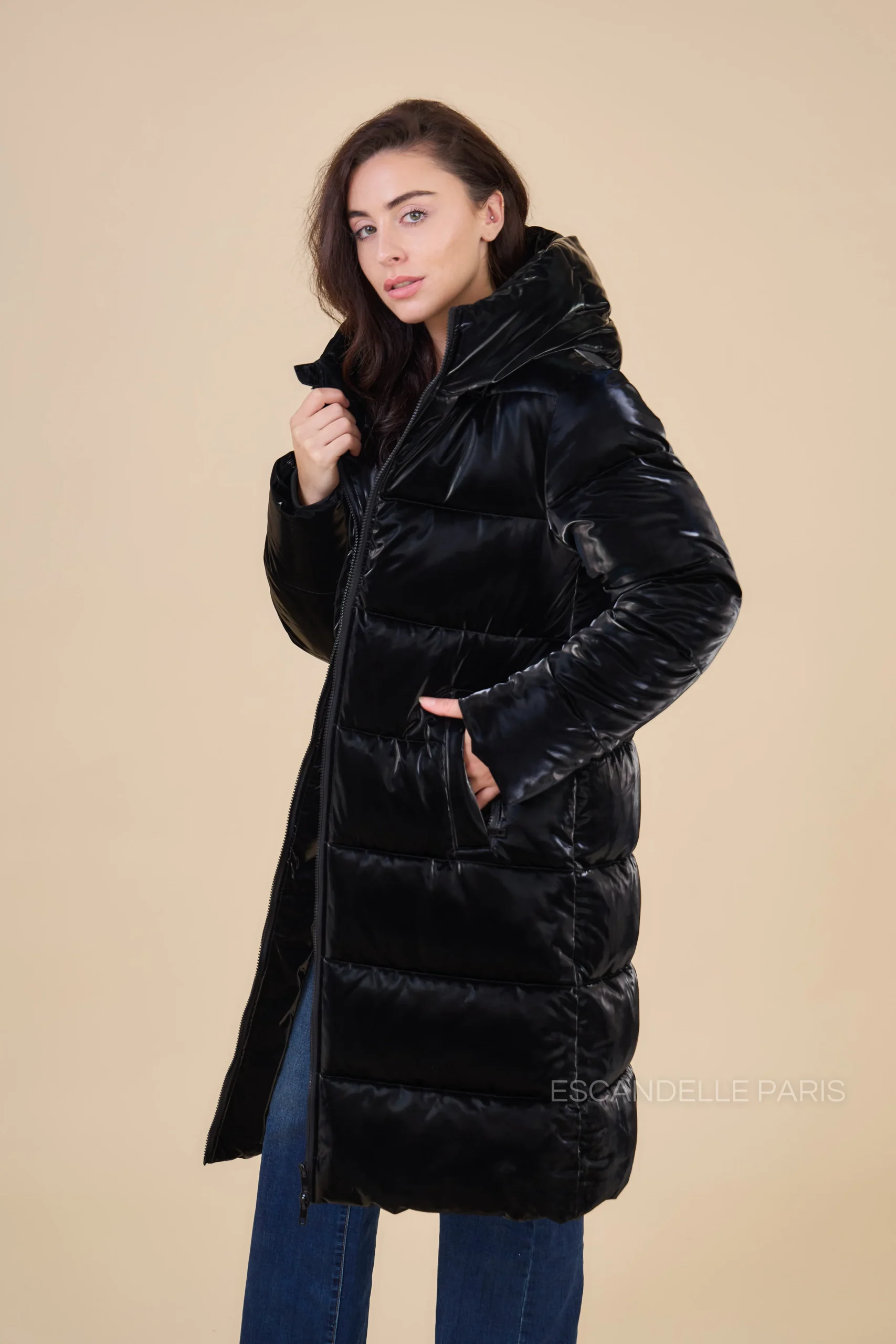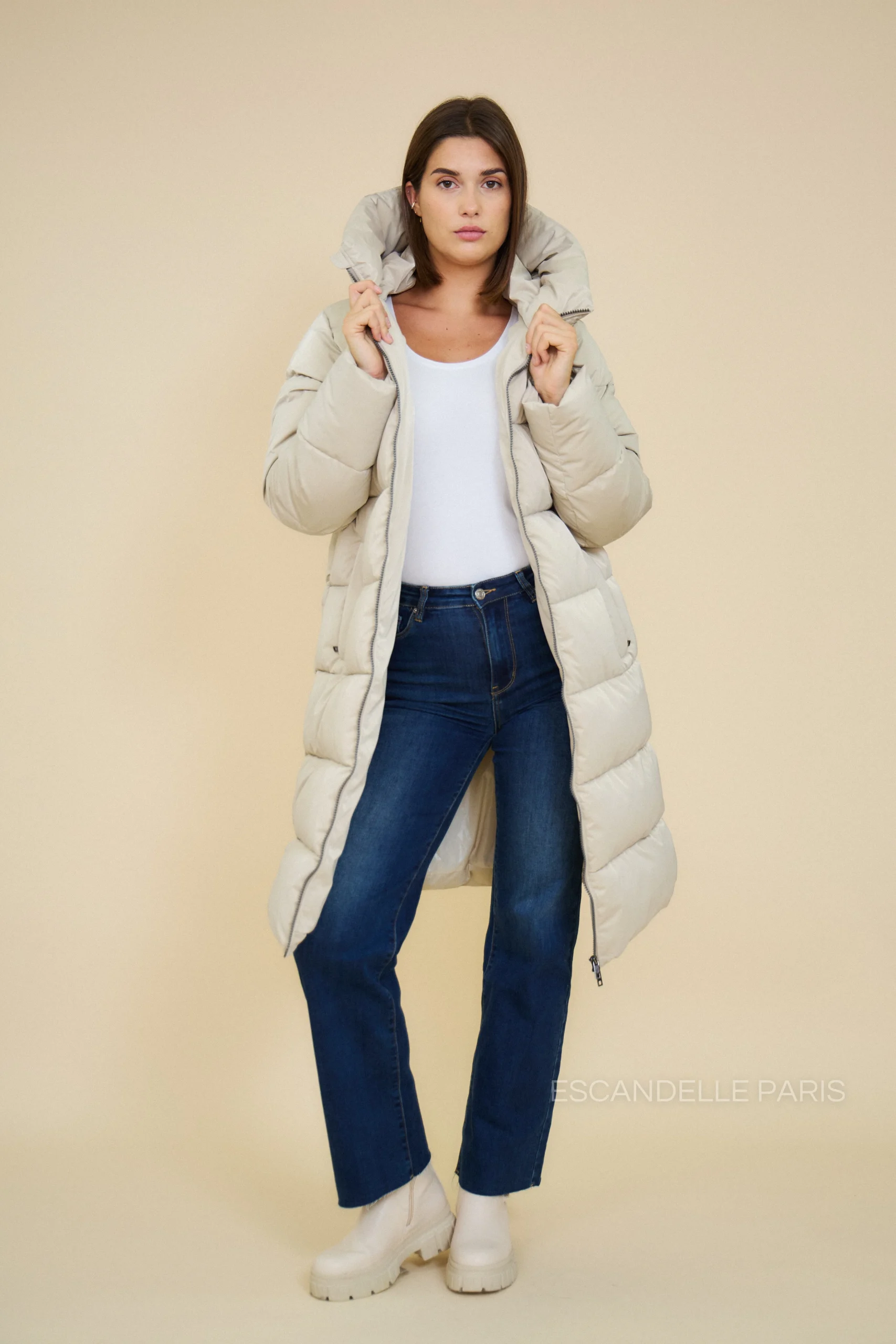 Doudoune longue matelassée à capuche et col montant Coupe droite oversized Fermeture zip sur le devant Deux poches latérales zippé devant Conseil taille : prenez une taille en dessous de votre taille habituelle Nos mannequins mesurent 173cm et portent une taille S