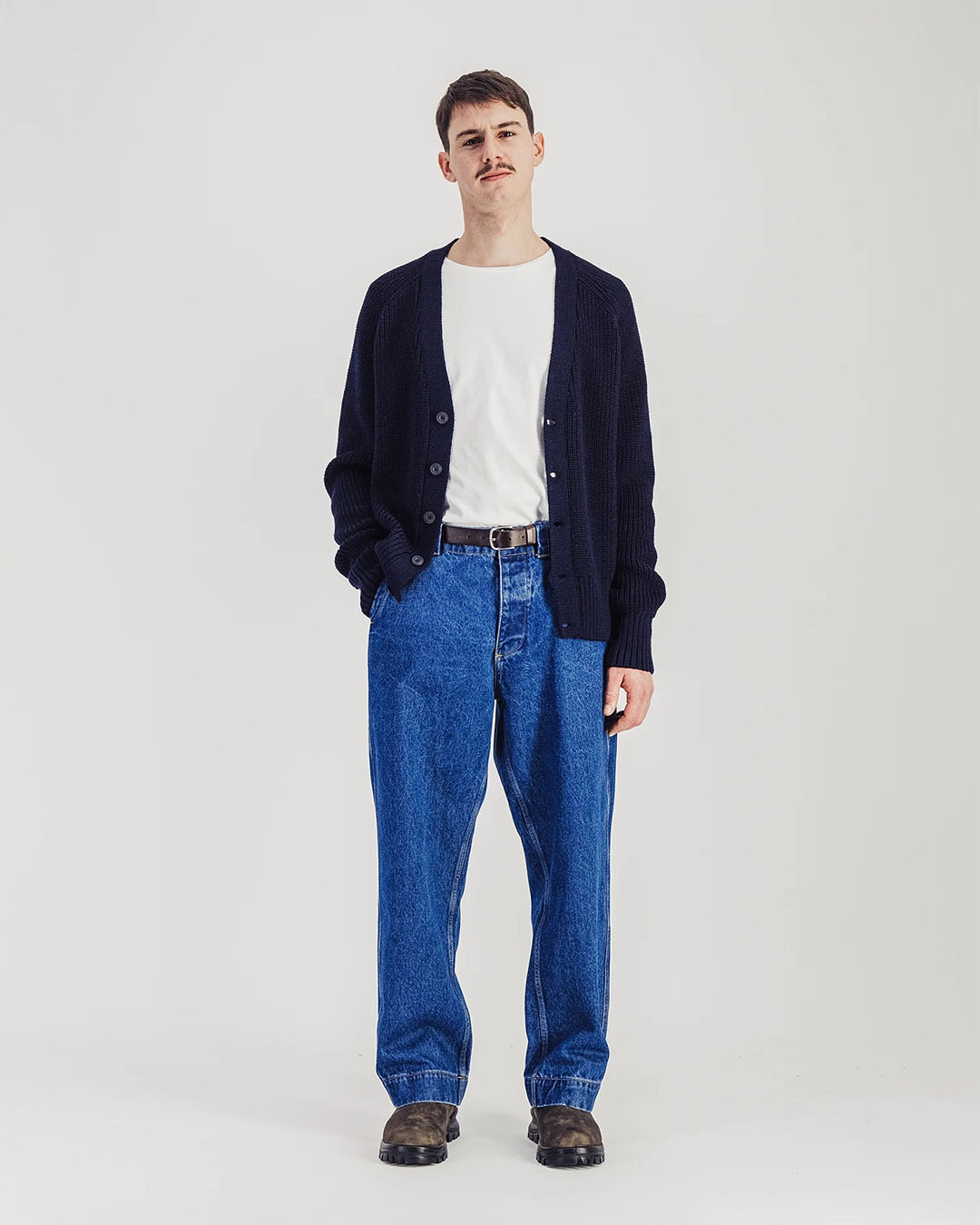 Pantalon extra-large inspiré des pantalons de travail en denim noir. Coloris : Stone Composition : 100% coton organique (475 gr/m2) poches italiennes Une poche plaquée au dos Braguette à boutons Boutons métal Coupe extra large Fabriqué au Portugal
