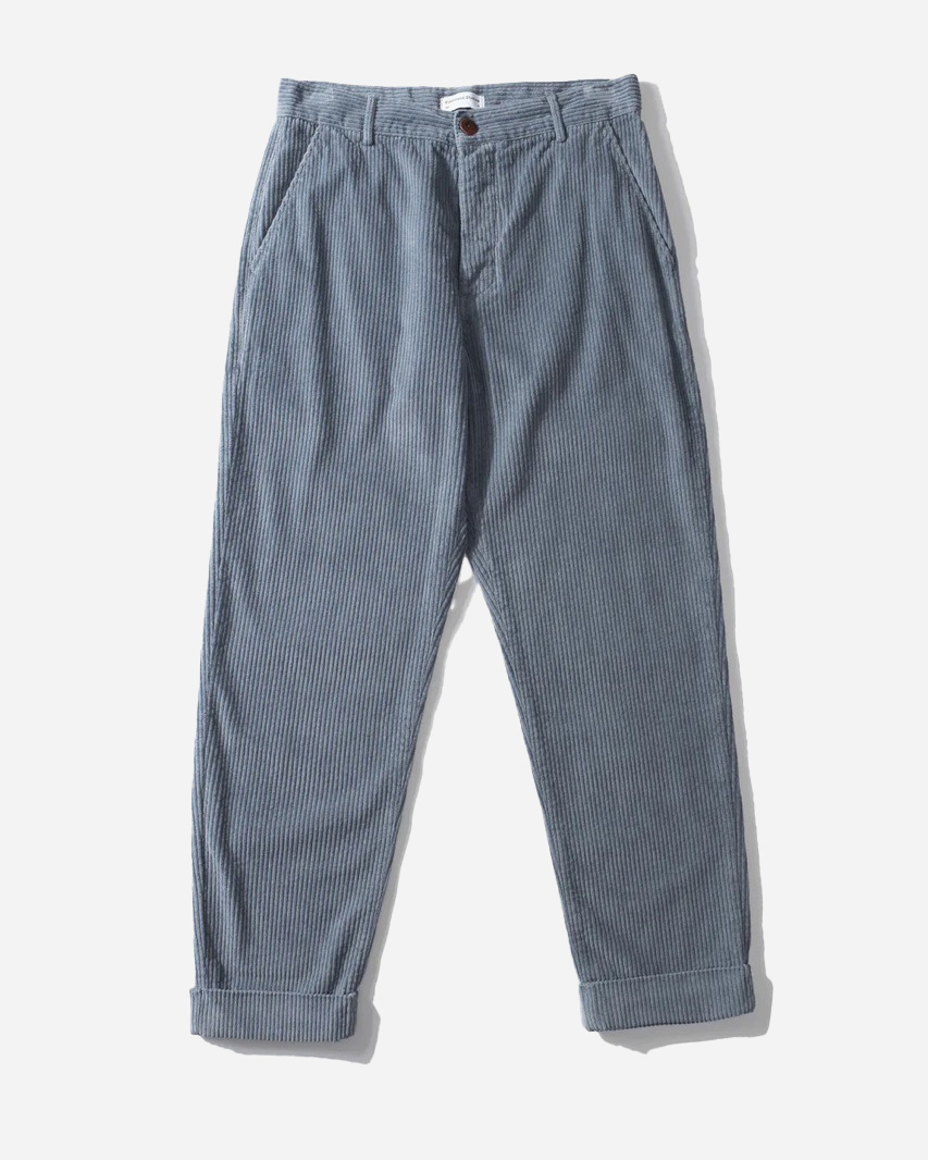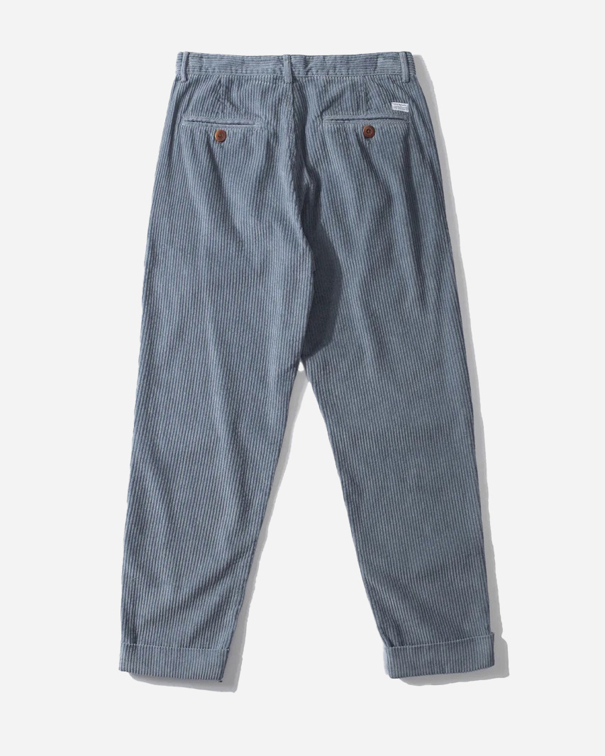 Le pantalon en velours côtelé Jorge Steel Blue est un pantalon à la coupe 7/8ème qui vous donnera une silhouette décontractée et originale avec son large revers en bas de jambe et sa coupe droite.
