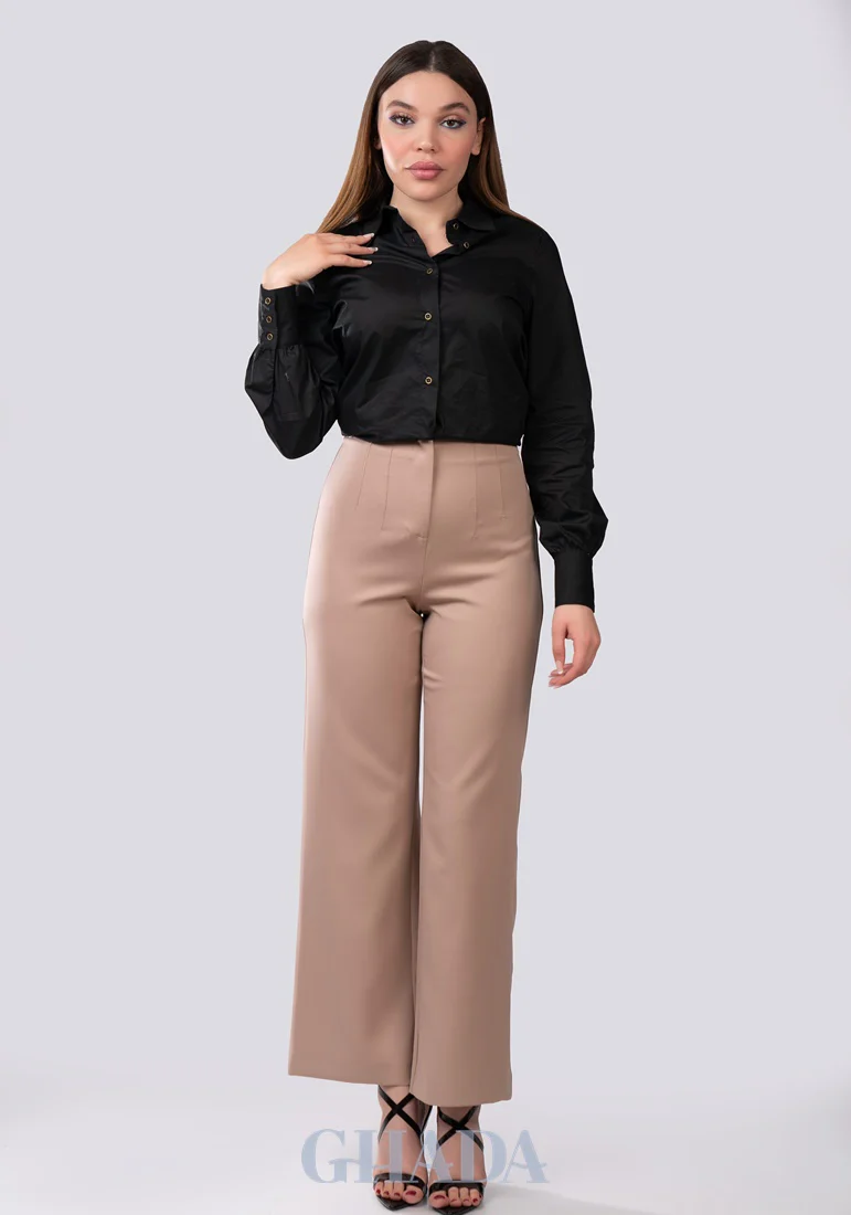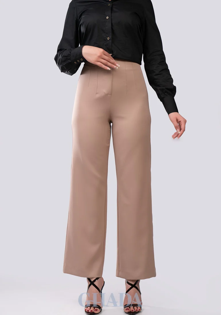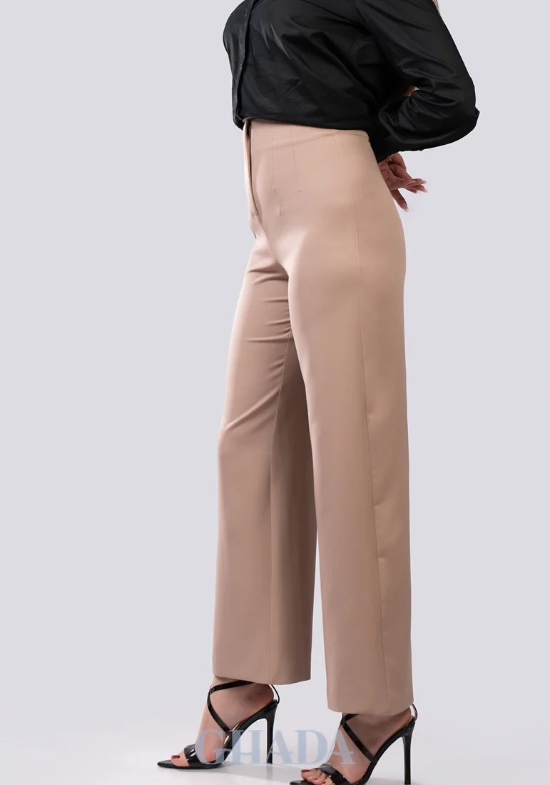 Pantalon fluide en beige sepia