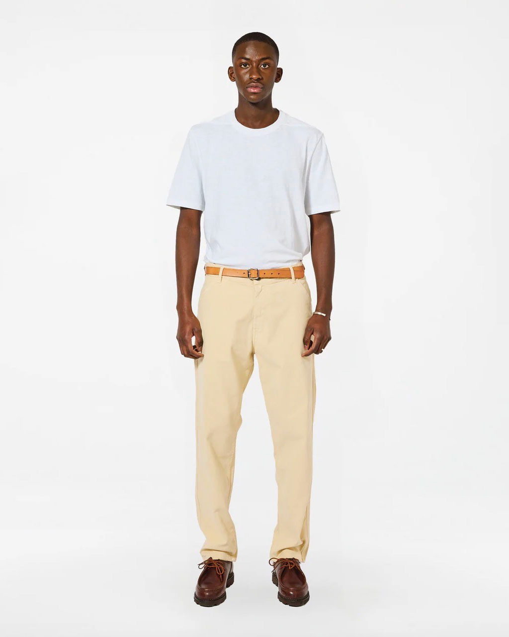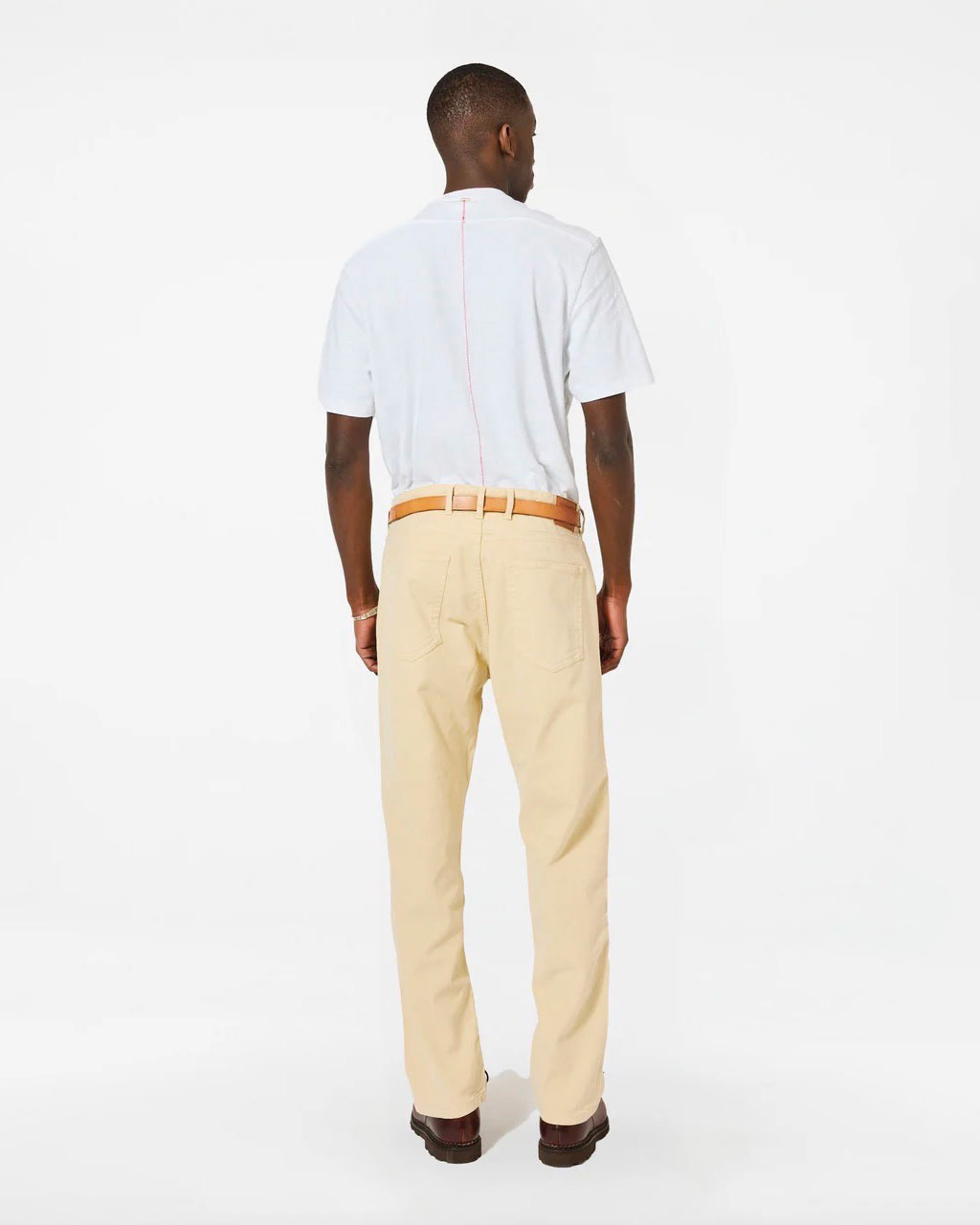 Le Pantalon Chino en Twill de coton de la marque Homecore, une coupe carotte confortable avec un soupçon d’élasthanne pour vous laisser libre de vos mouvements. Coloris : Écru Composition : 97% Coton – 3% Élasthanne Pantalon coupe carotte Surpiqûres contrastées Poches diagonales à l’avant avec poche briquet sous la ceinture Deux poches jean au dos Tissu Portugais Cordon en cuir végétal avec noeud coulant placé sur le centre de gravité Étiquette HOMECORE en cuir synthétique Fabriqué au Portugal
