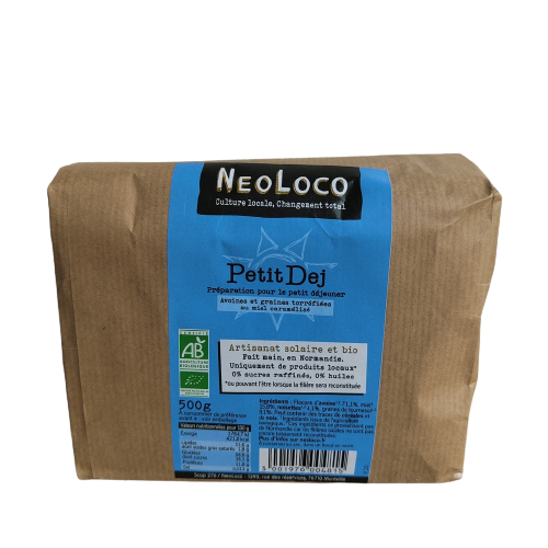 Le Petit Déj NeoLoco a été pensé pour un petit déjeuner équilibré, sans sucres raffiné ou autres huiles industriels qui sont trop souvent utilisé dans ce type de produits.